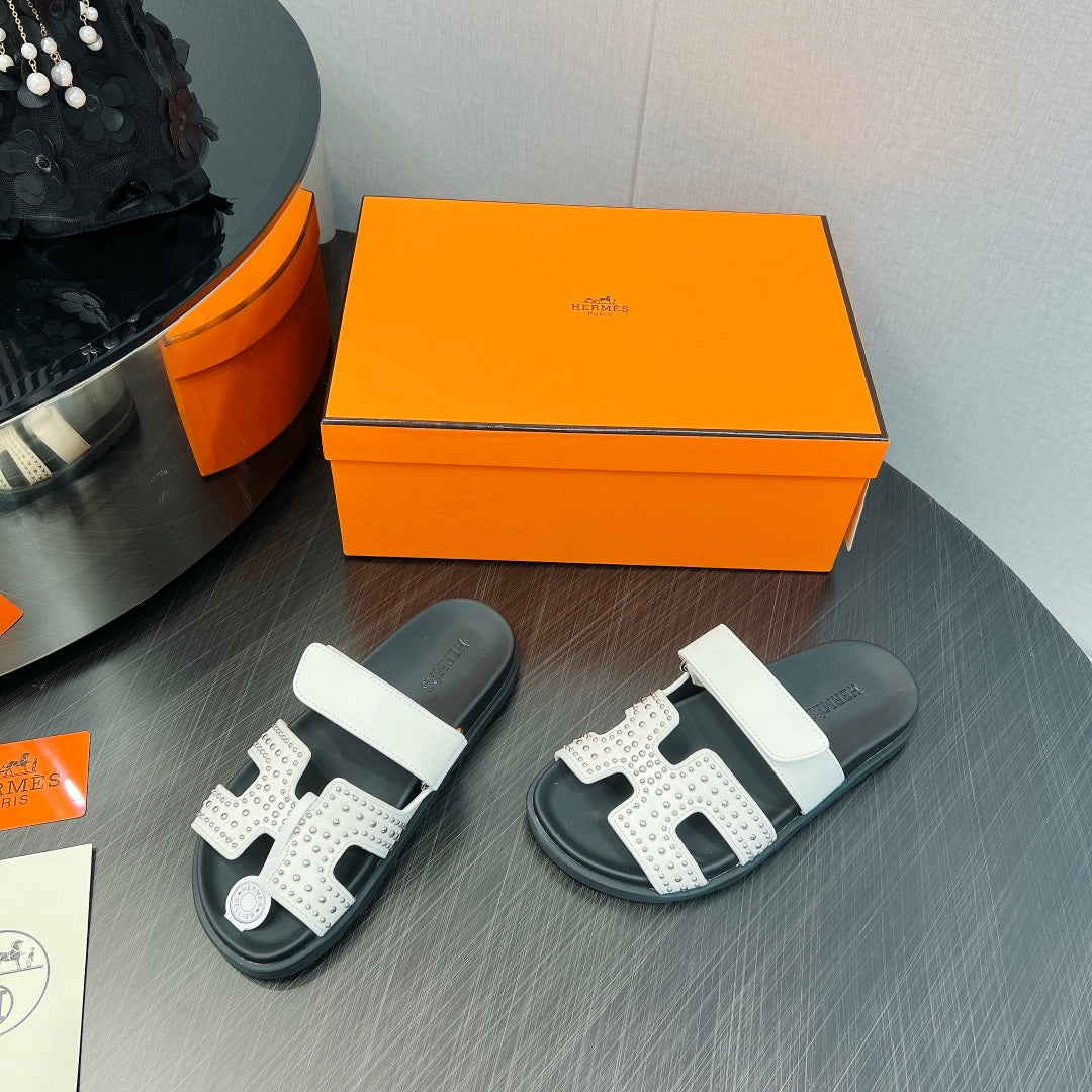 CHYPRE SANDAL WHITE MIX BLACK CALFSKIN STYLIZED