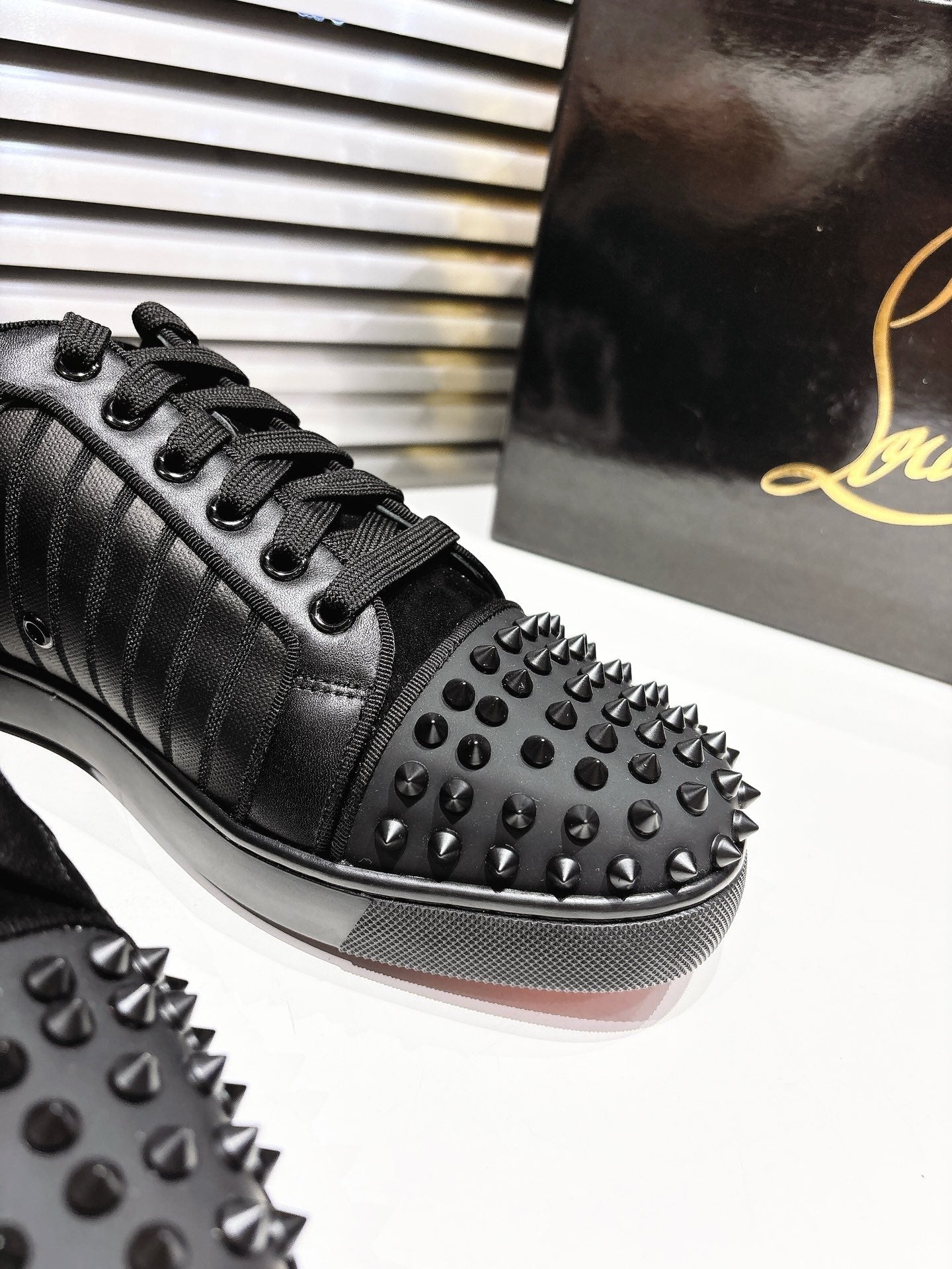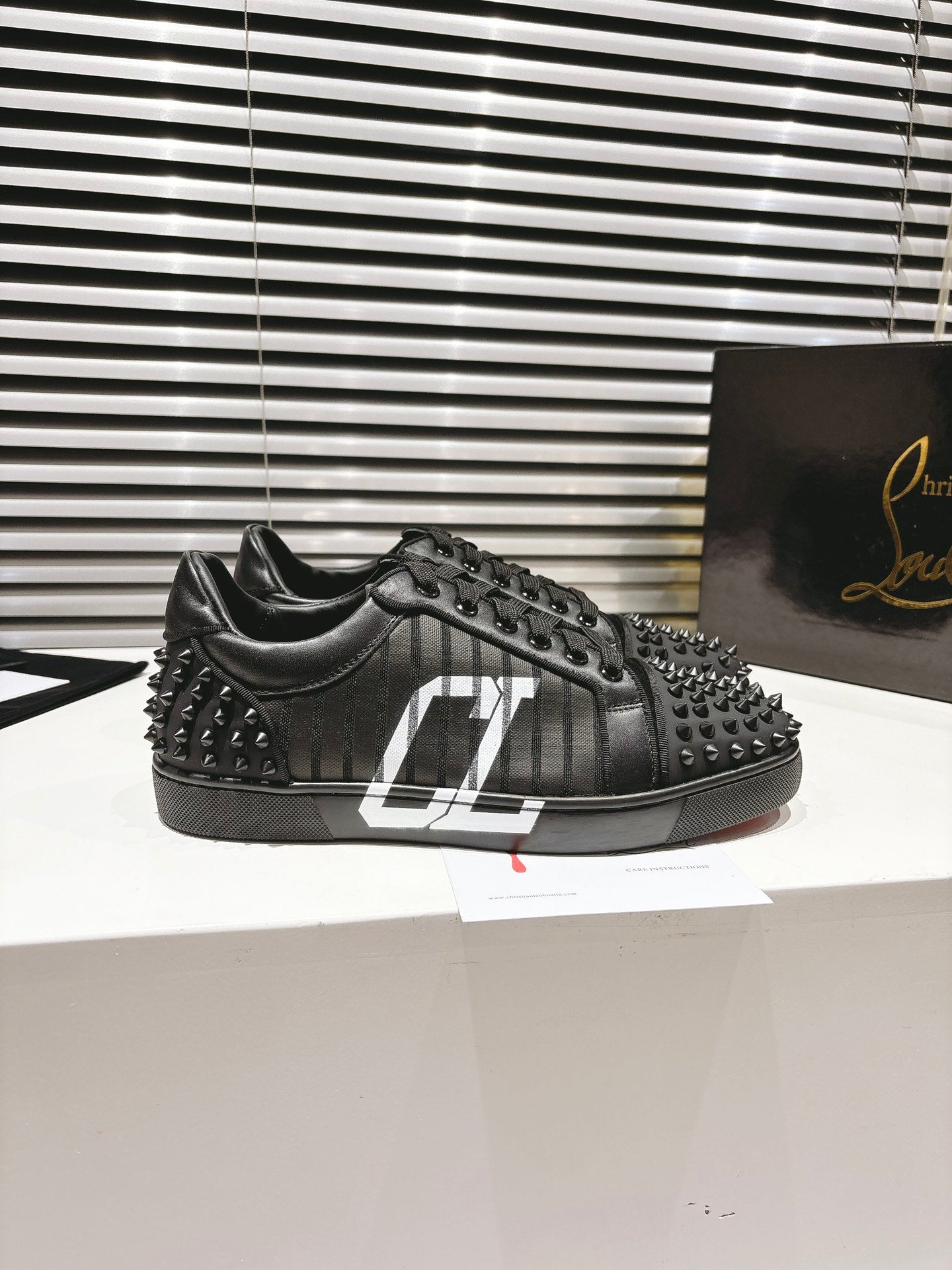 CL 25 Stud Print Sneaker Black Fabric Leather 323161