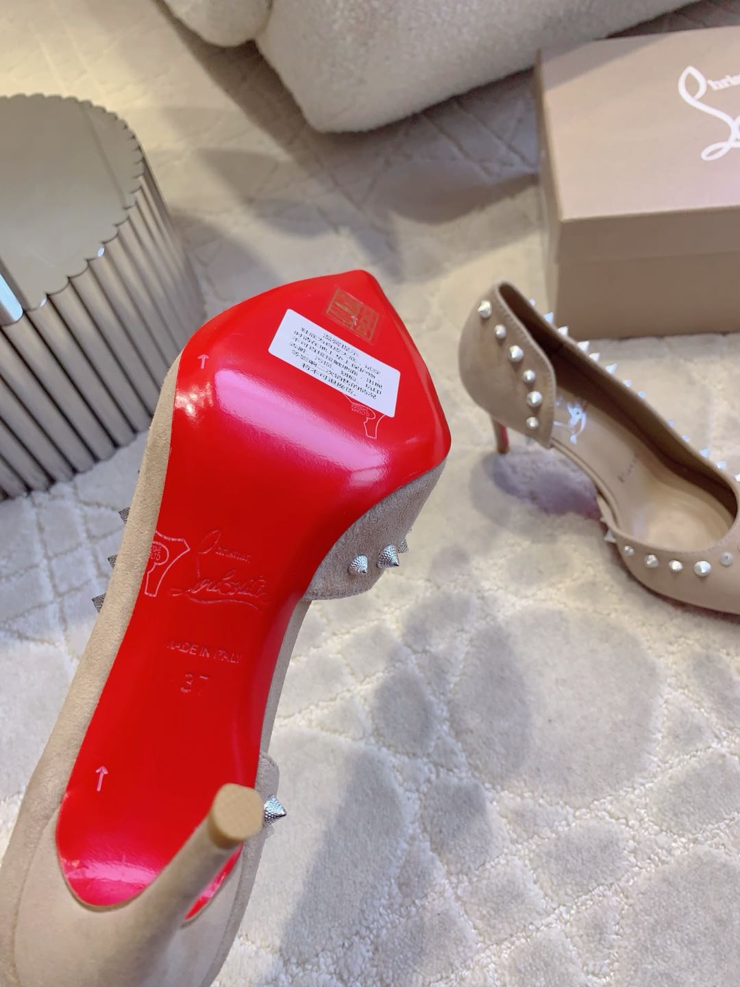 CL Irishell 85 Studded d'Orsay Pumps Cream Suede 177131