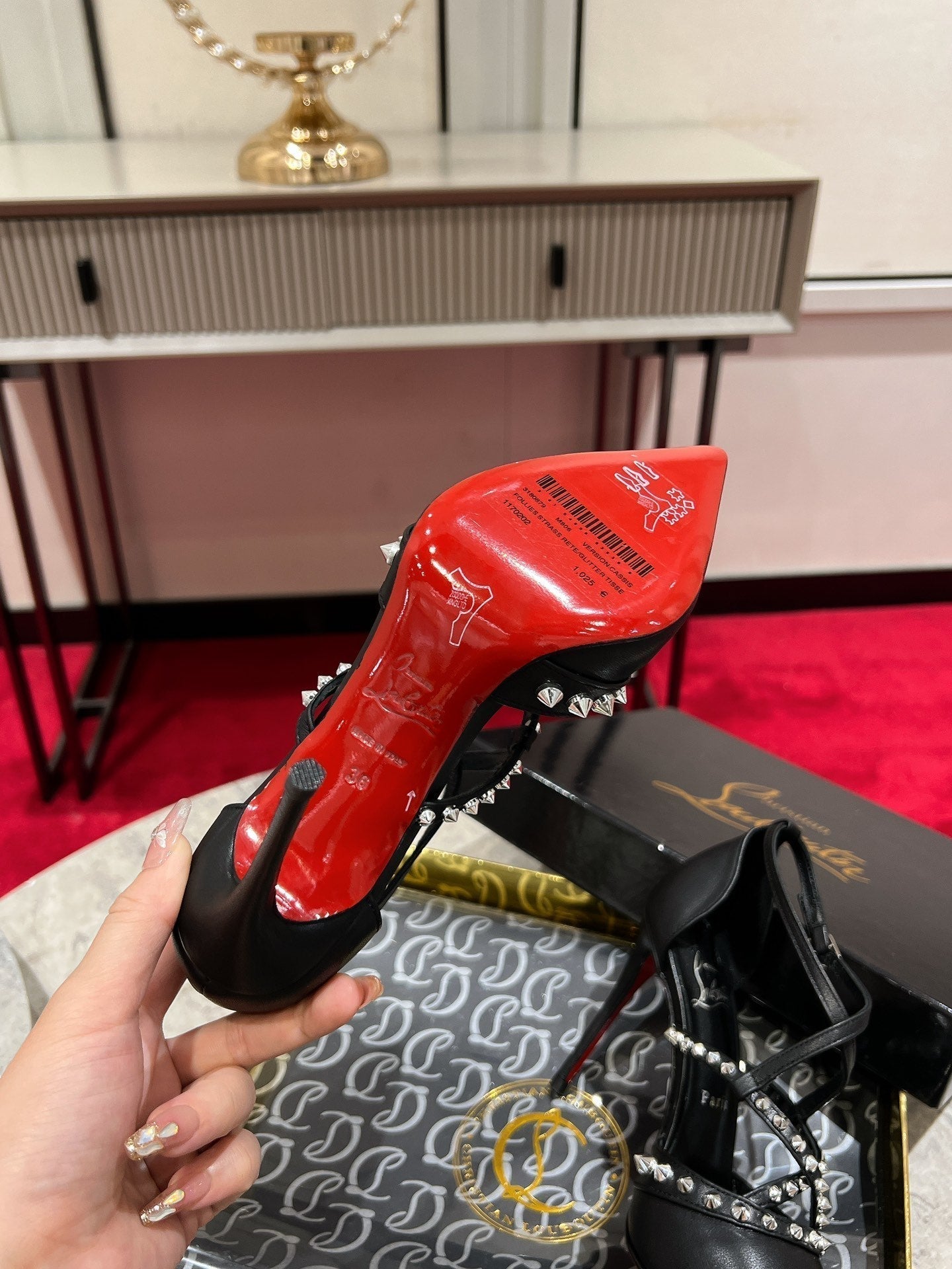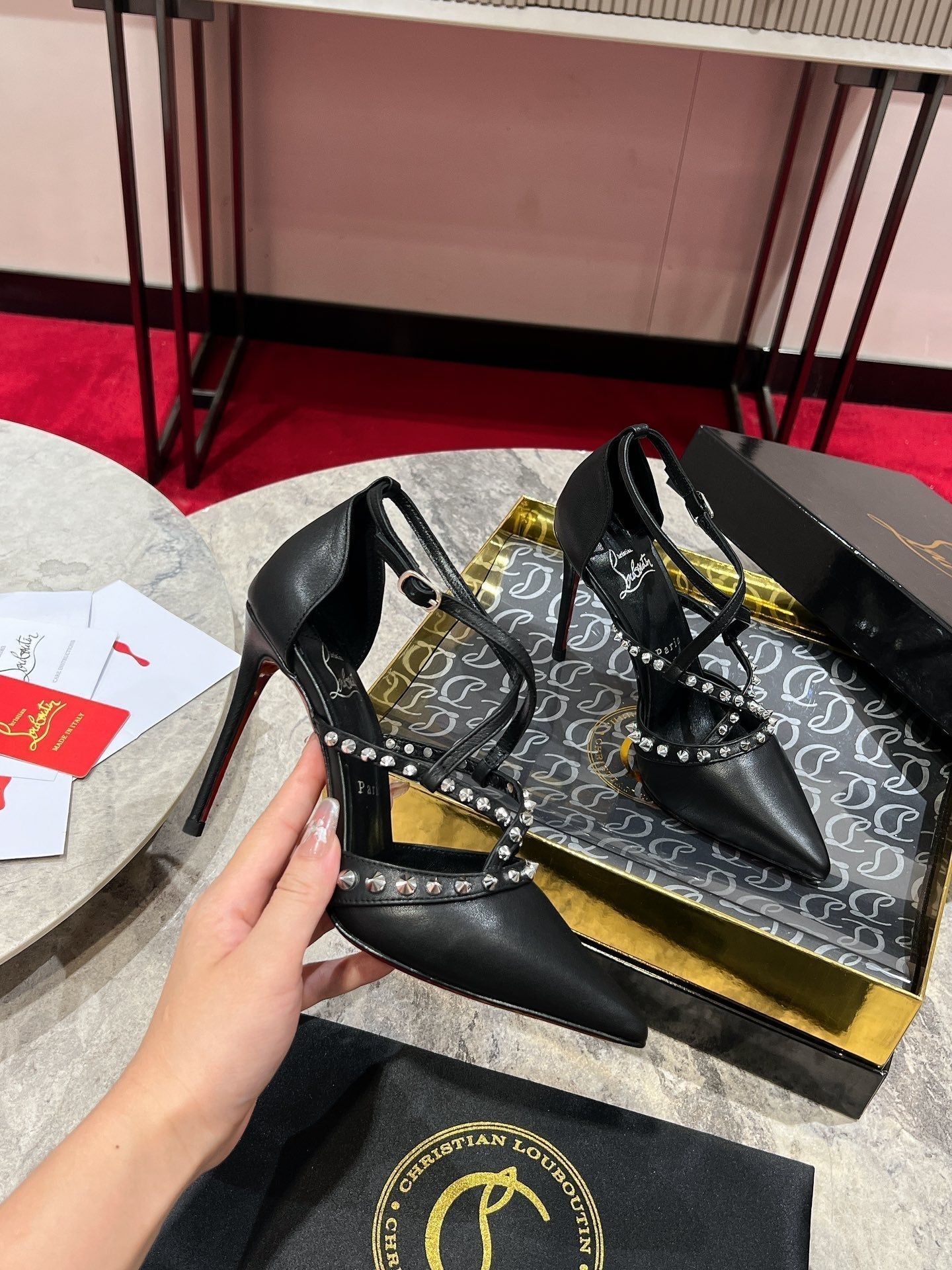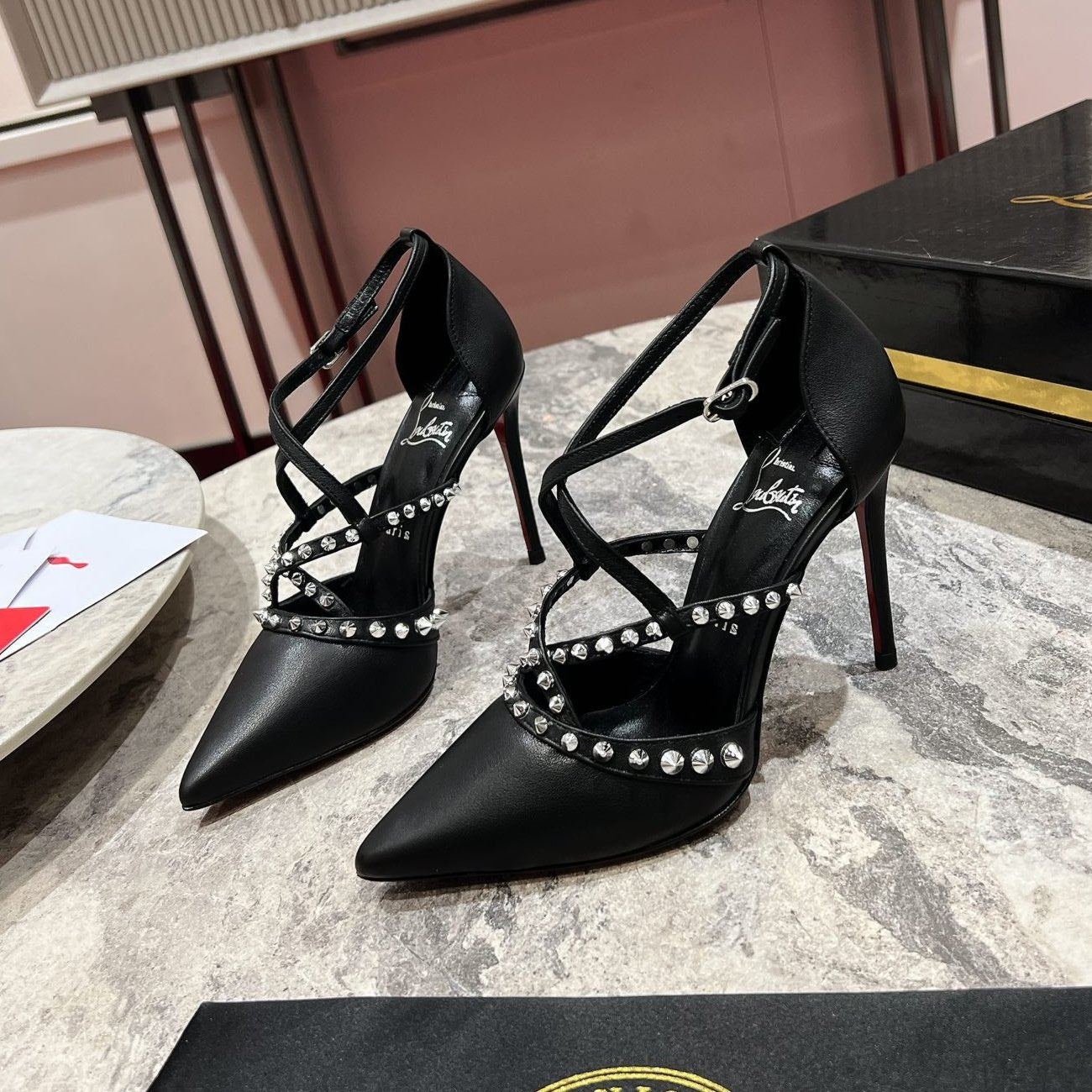 CL Tatooshka Spikes Pump 100mm Nappa Leather Black
