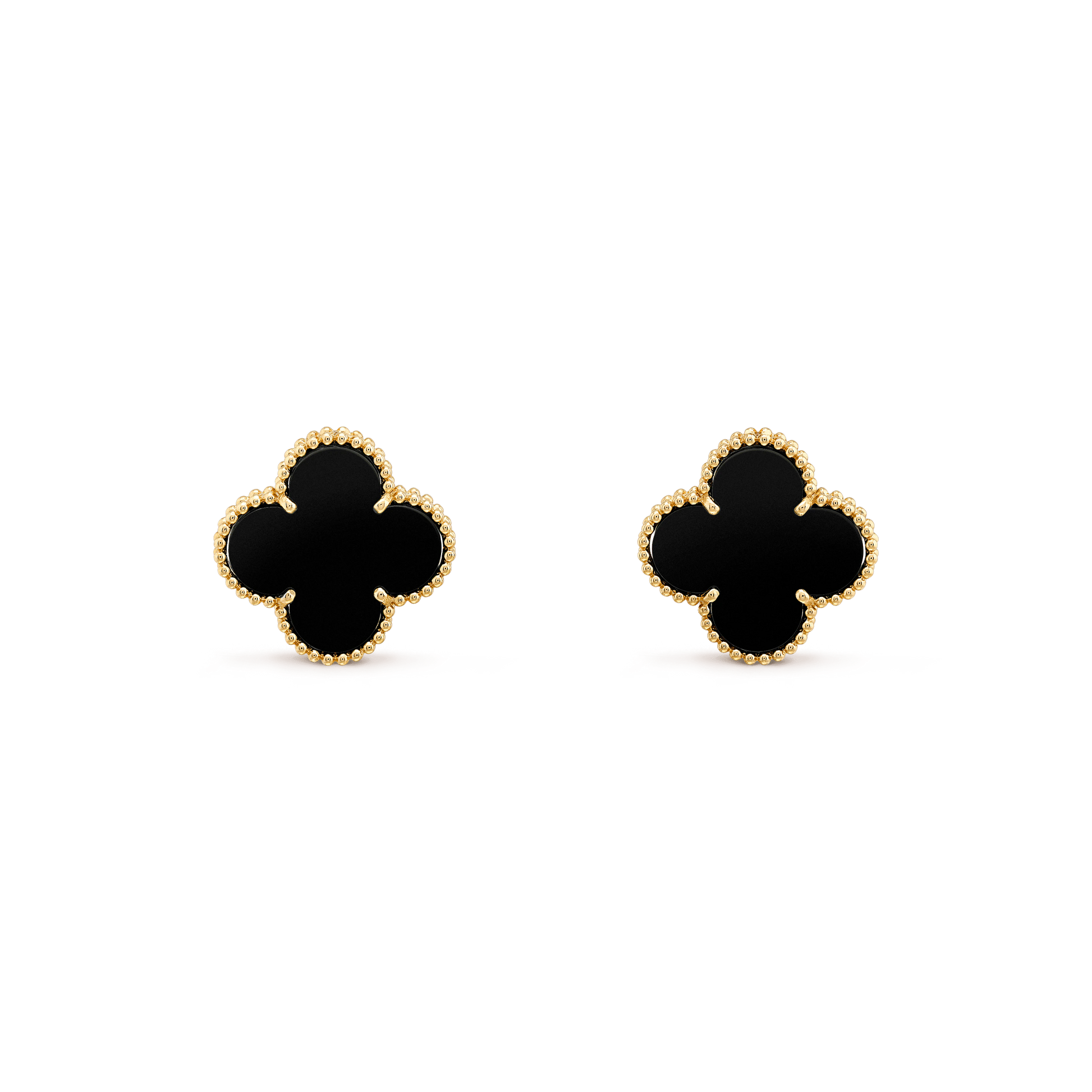 CLOVER MEDIUM ONYX PINK GODL EARRINGS