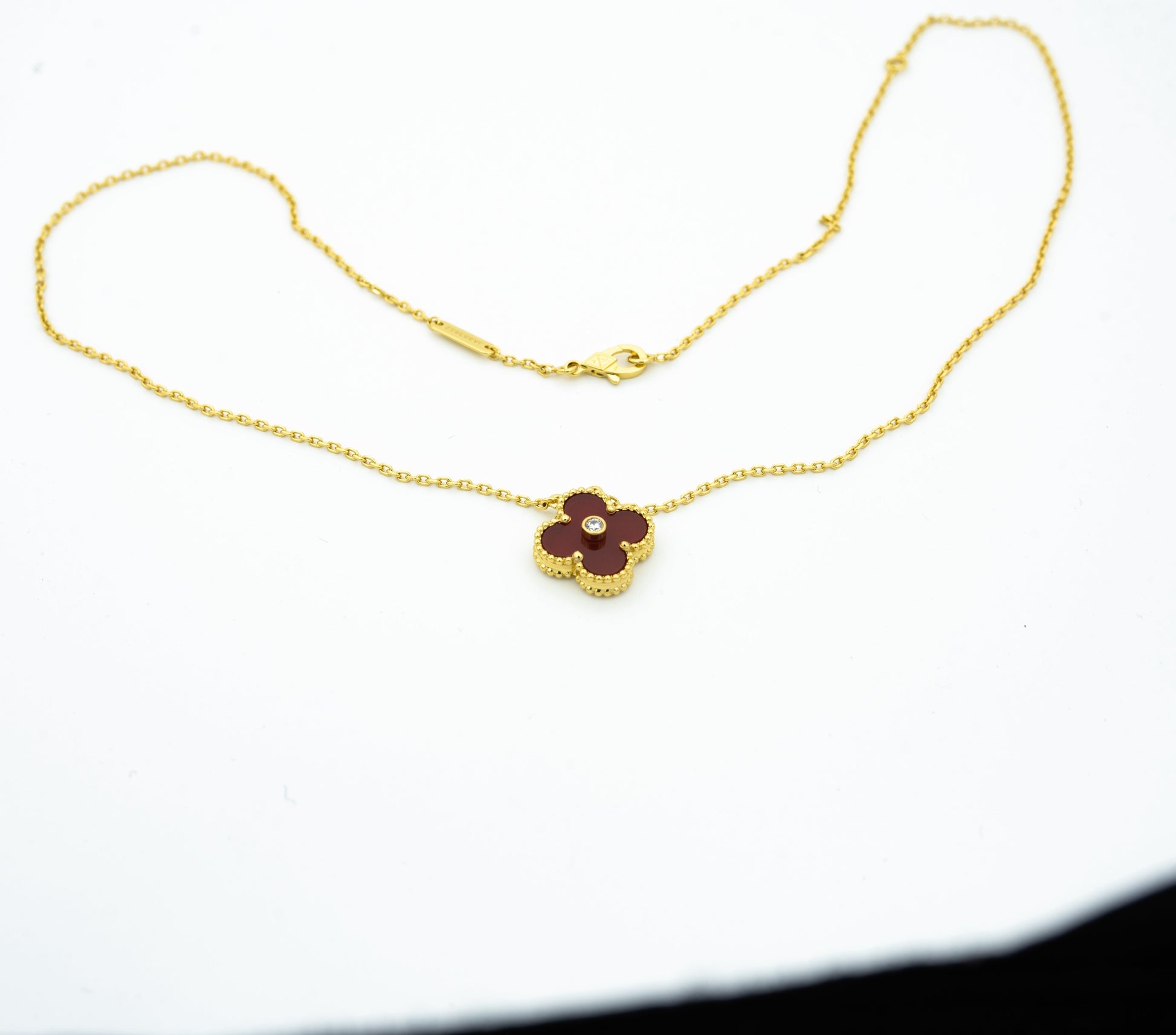 CLOVER NECKLACE GOLD DIAMOND CARNELIAN