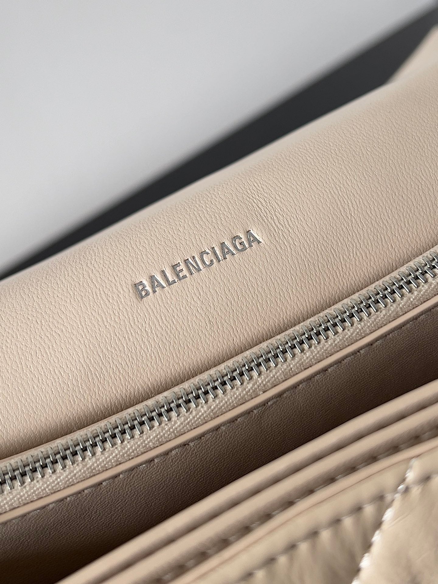 CRUSH CHAINED BAG 32 IN BEIGE QUILTED LAMBSKIN SILVER HARDWARE