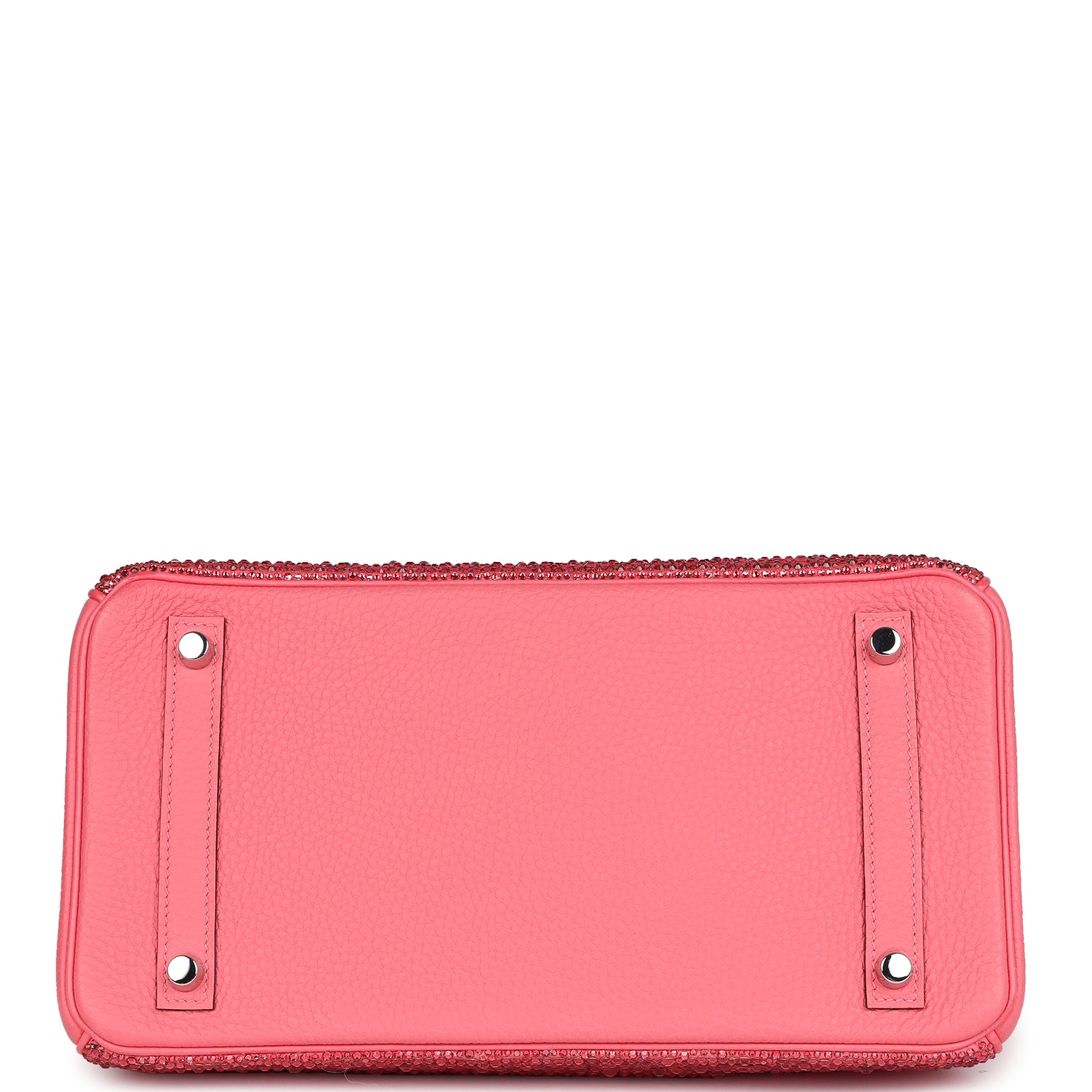 Custom Ombre Swarovski Crystal Hermes Birkin 30 Rose Azalee Clemence Palladium Hardware