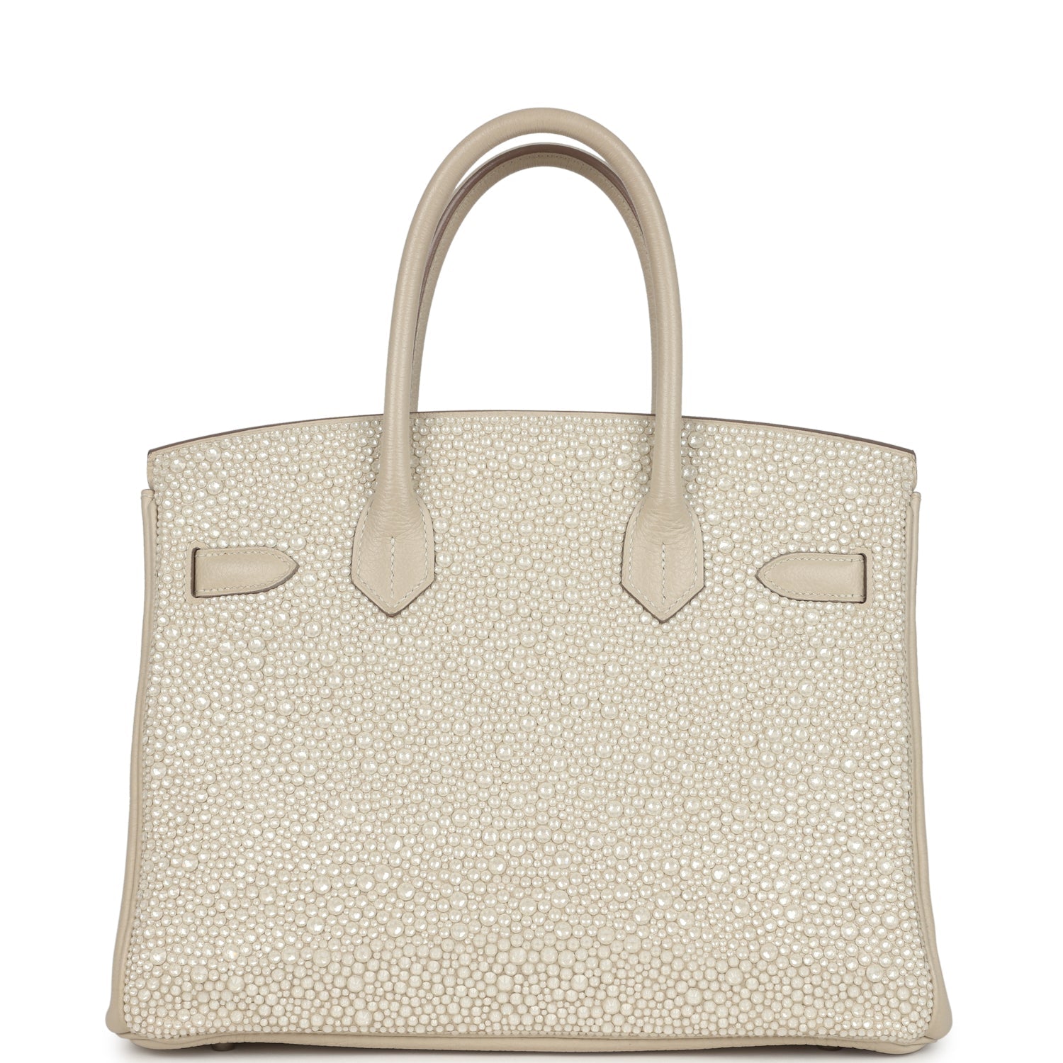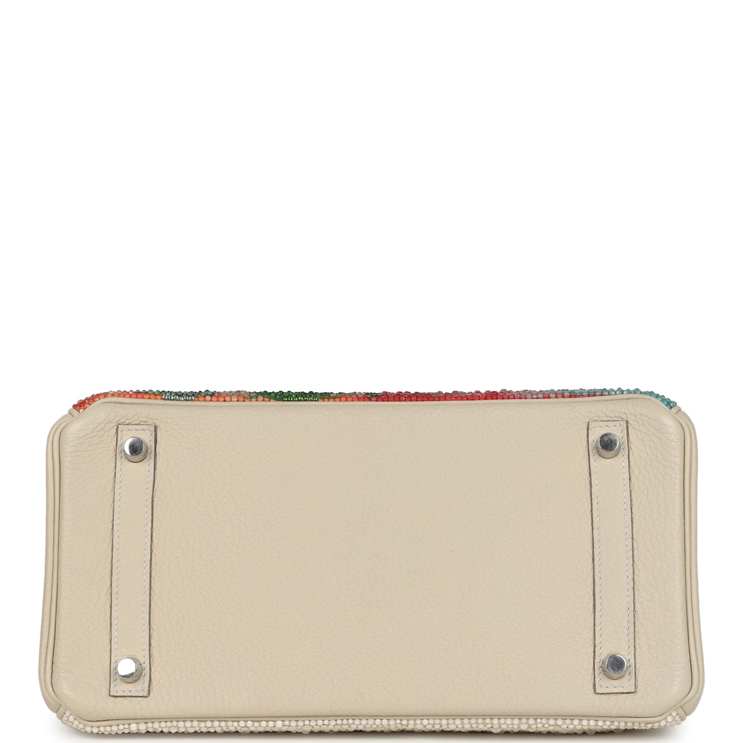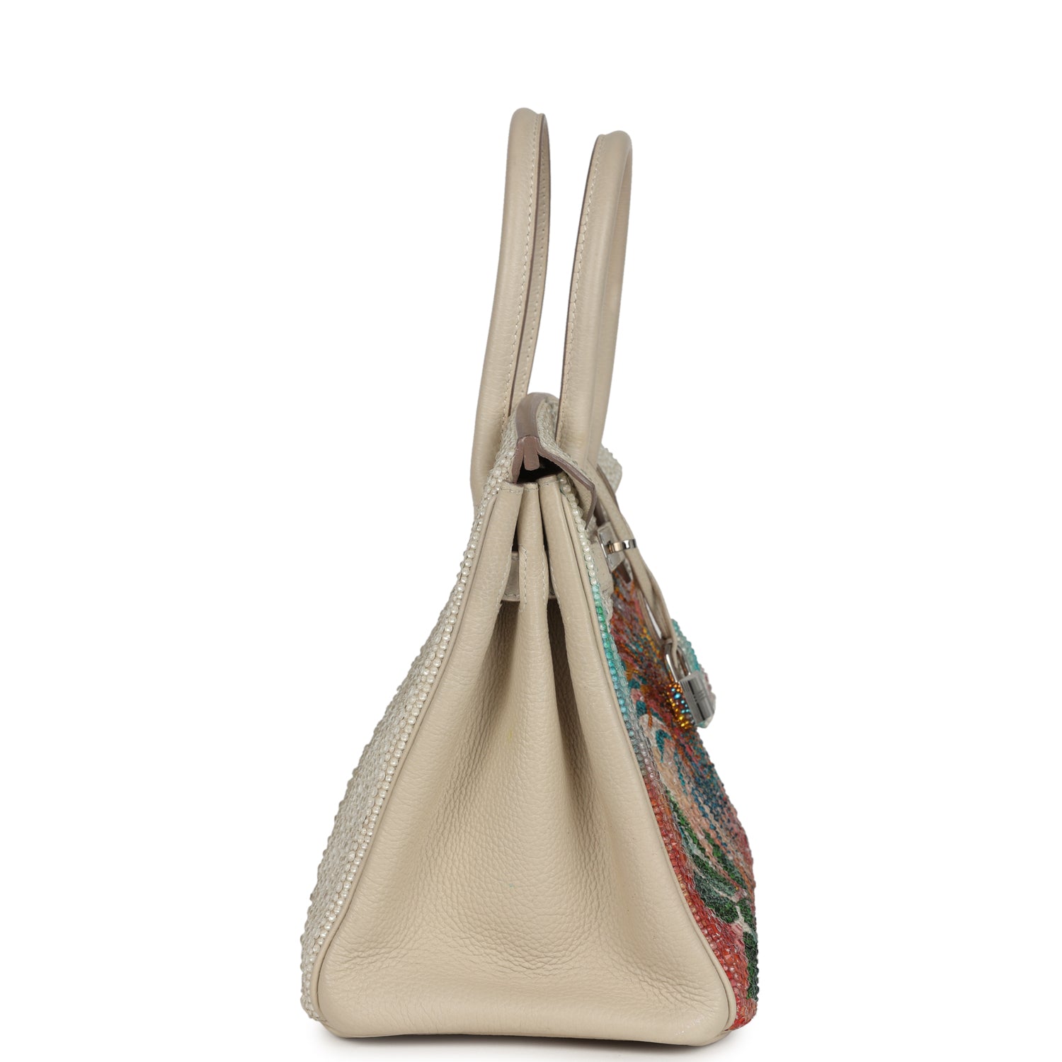 Custom "Paradise" Swarovski Crystal Hermes Birkin 30 Craie Togo Palladium Hardware