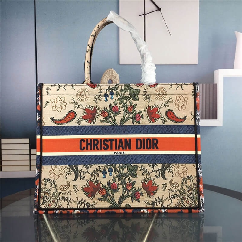 The Dior Book Tote light bag is an original style designed by creative director Maria Grazia Chiuri and has now become a model of Dior aesthetics. This style can hold all the daily necessities and is embroidered with multicolor Dior Flowers motifs throughout. The front is decorated with the “Christian Dior” logo, and the two sides are decorated with patterns to add a contrasting modern feel. This lightweight bag is a model of Dior’s exquisite craftsmanship.