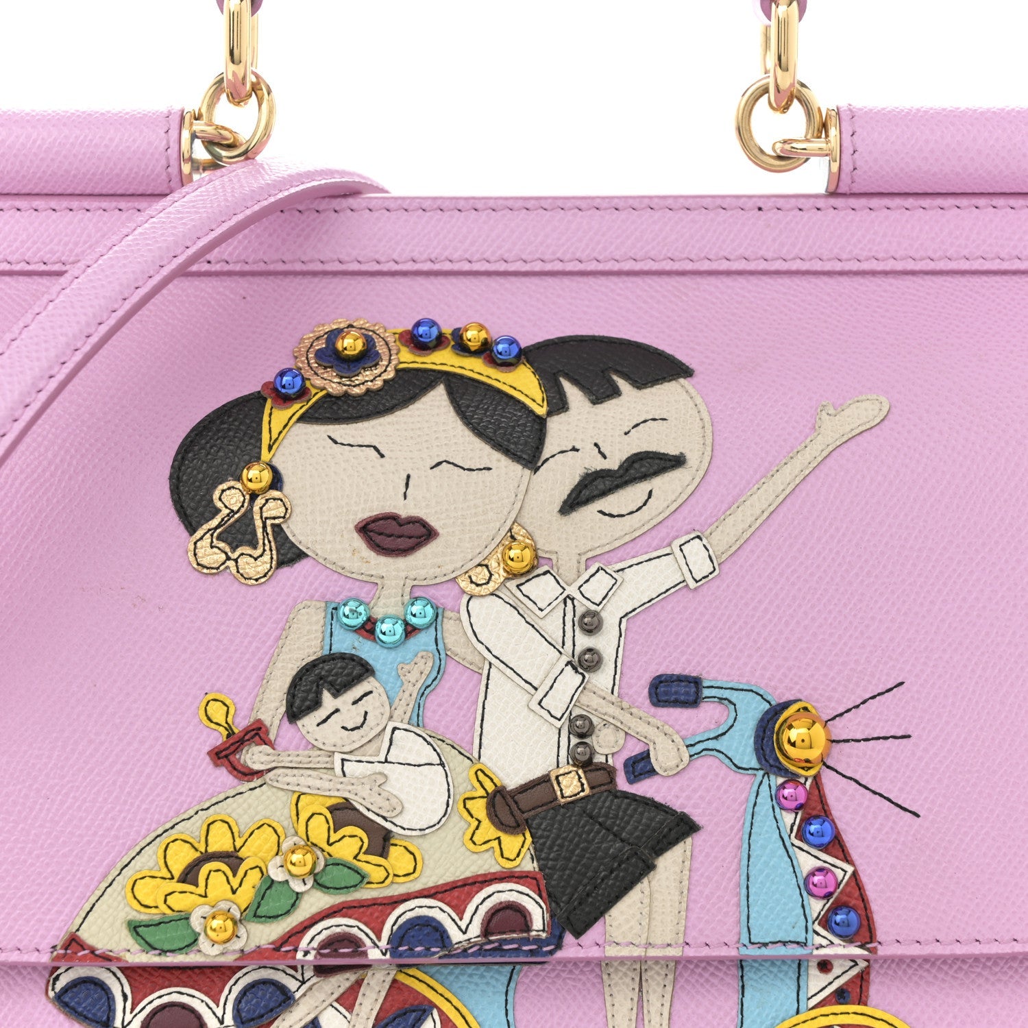 Dauphine Studded Medium DG Family Patch Miss Sicily Satchel Pink Rosa Chiaro