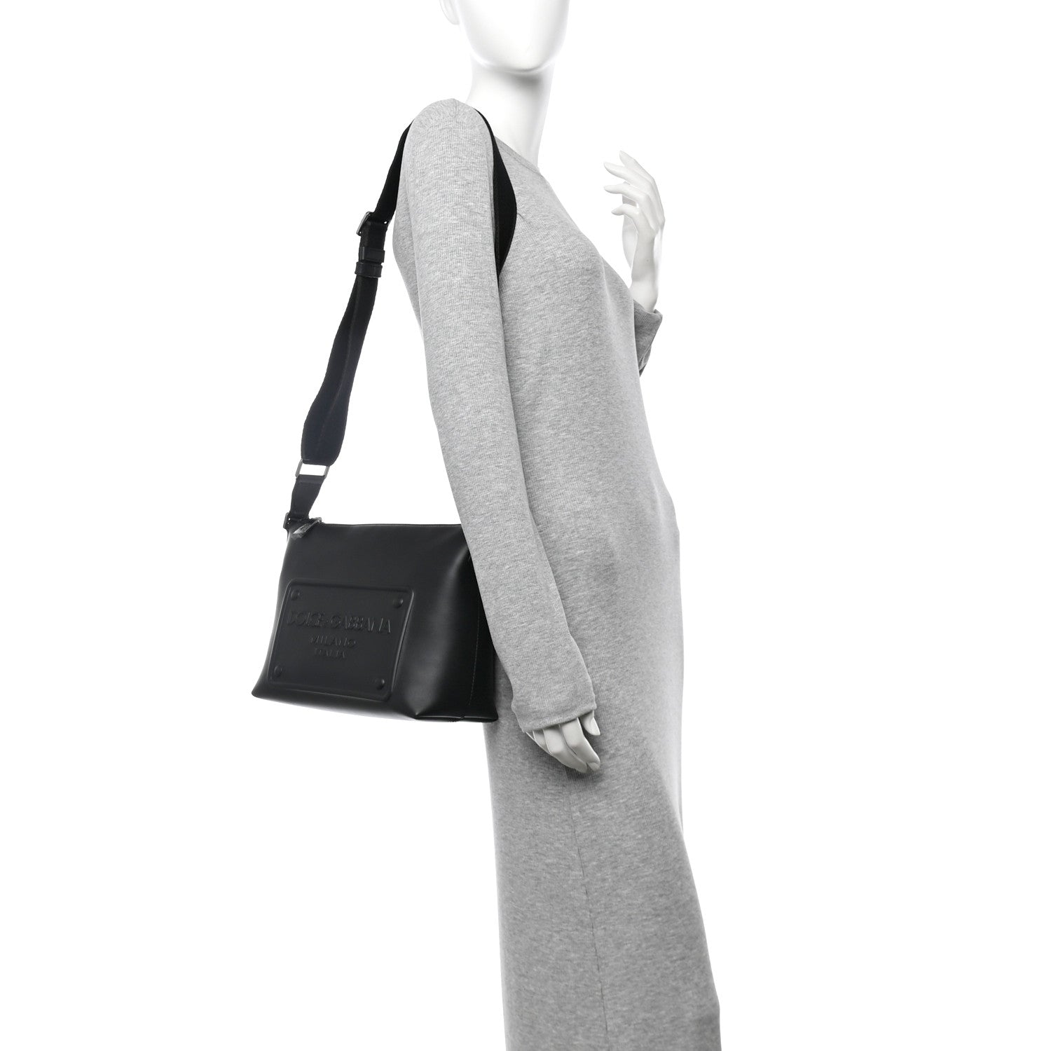 DOLCE GABBANA Calfskin Embossed DG Logo Shoulder Bag Black