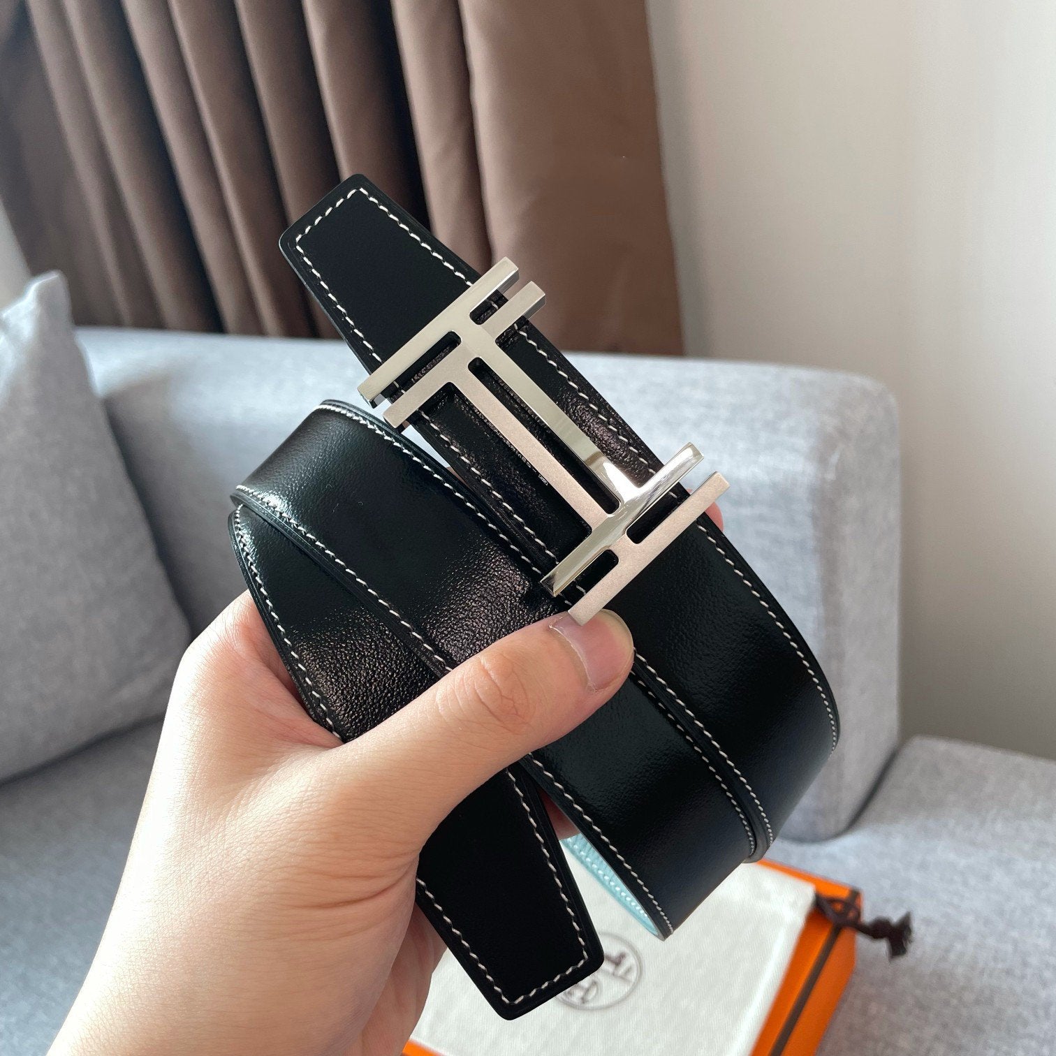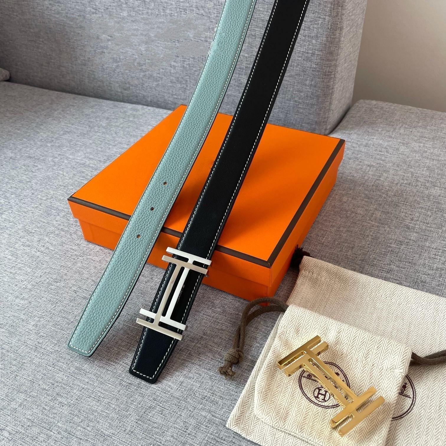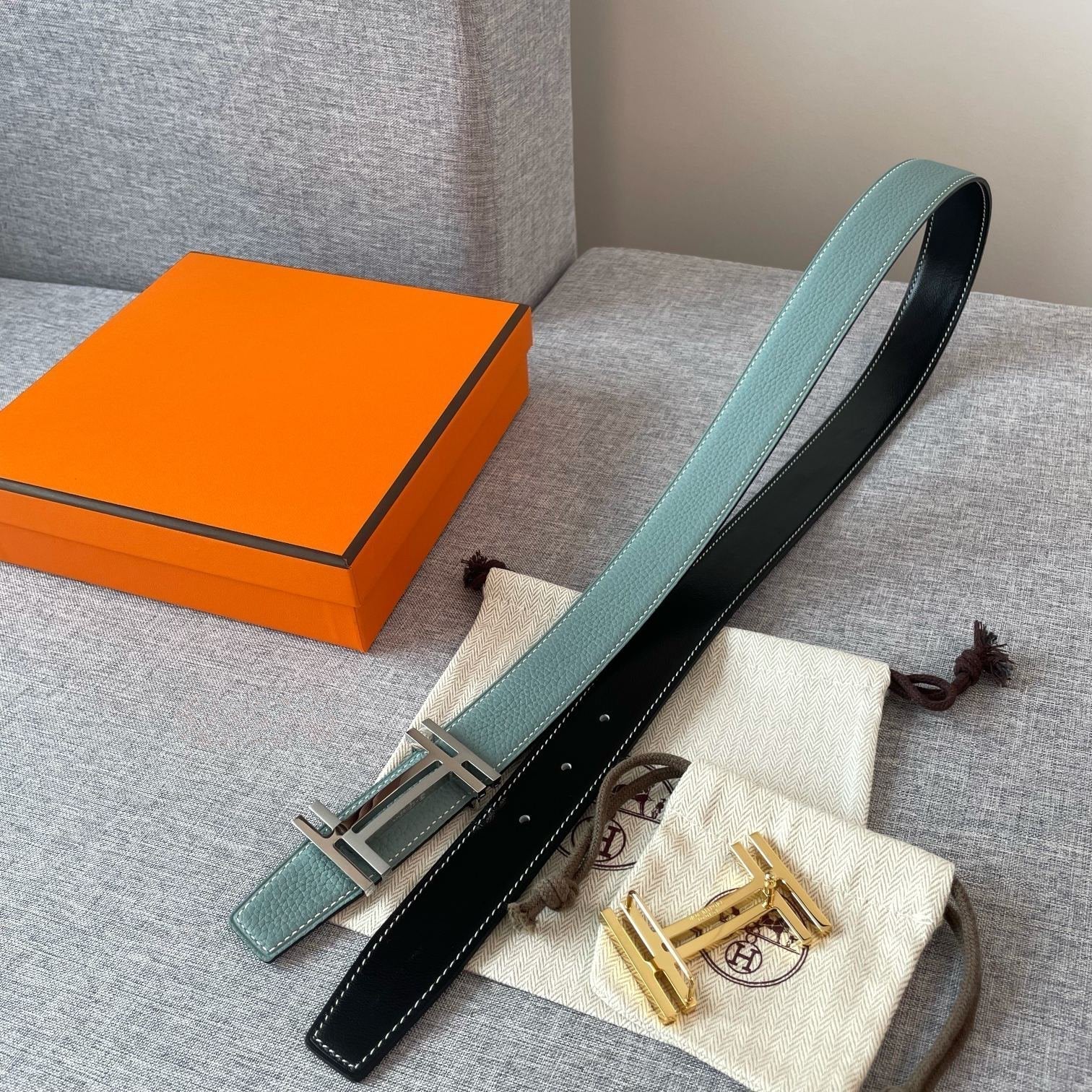 • H Buckle in permabrass plated metal.