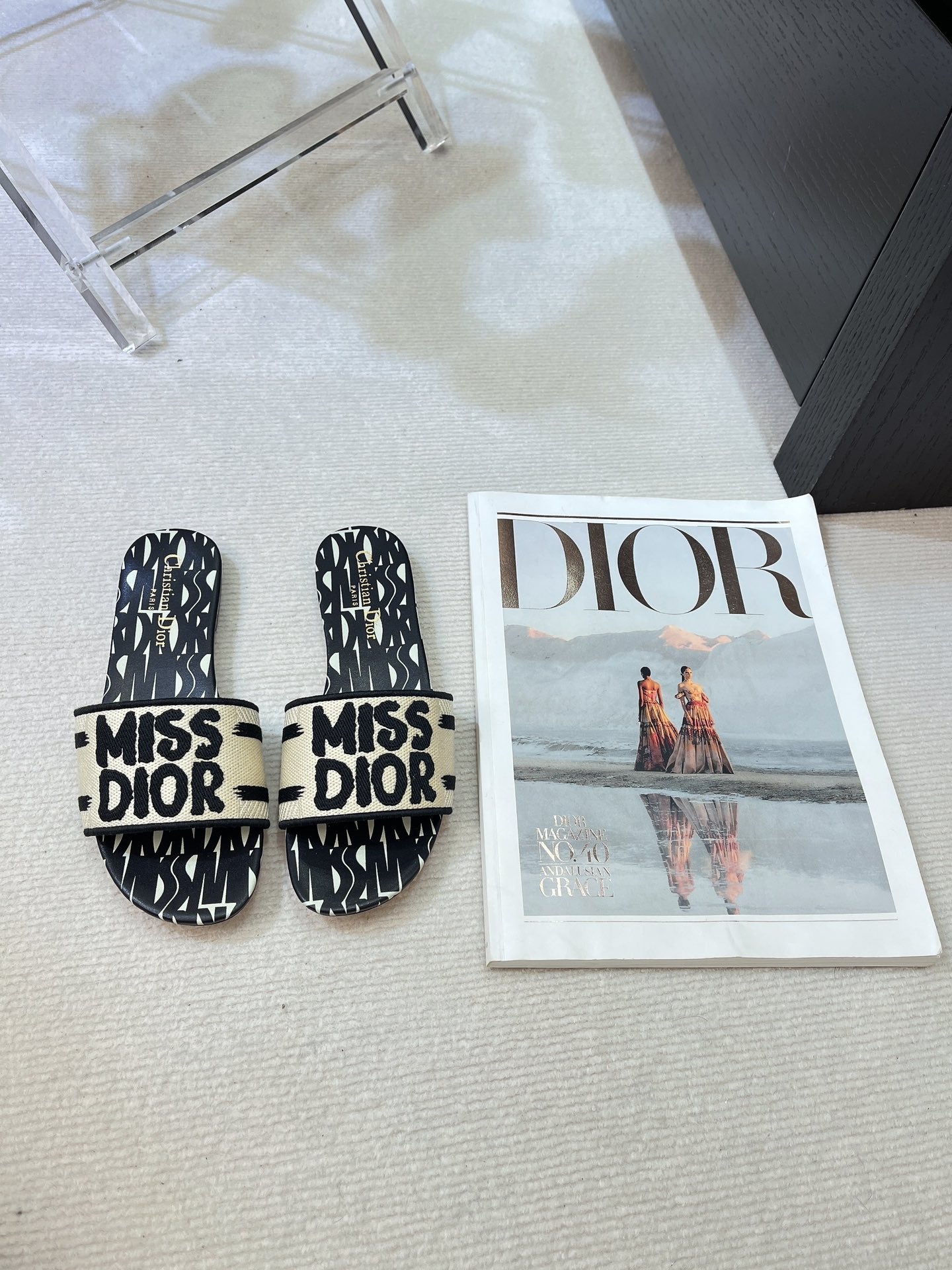 dway slide embroidered cotton black miss cd alllover motif