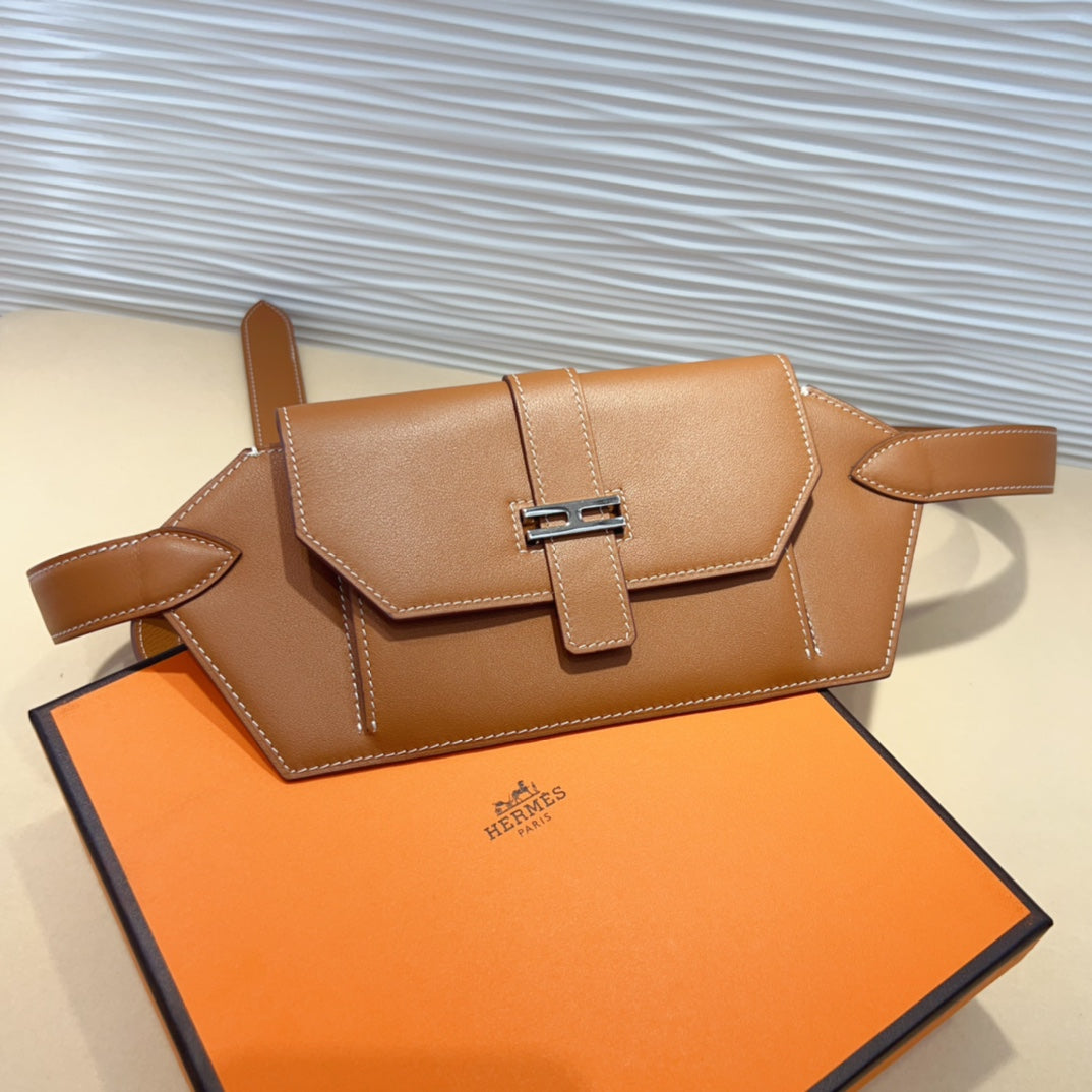 elan pocket 30 belt brown bag silver hardware