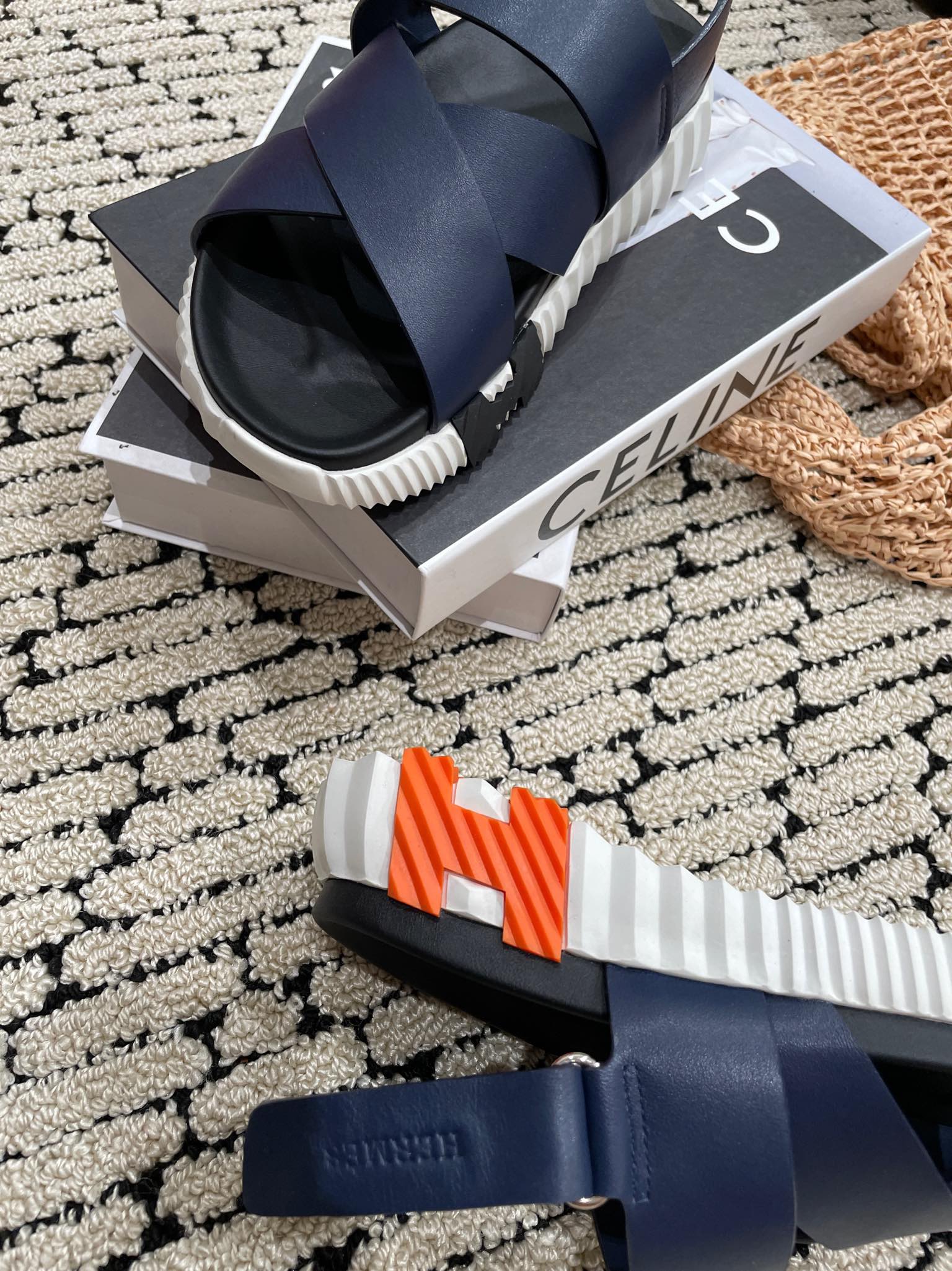 ELECTRIC SANDAL BLACK MIX NAVY CALFSKIN