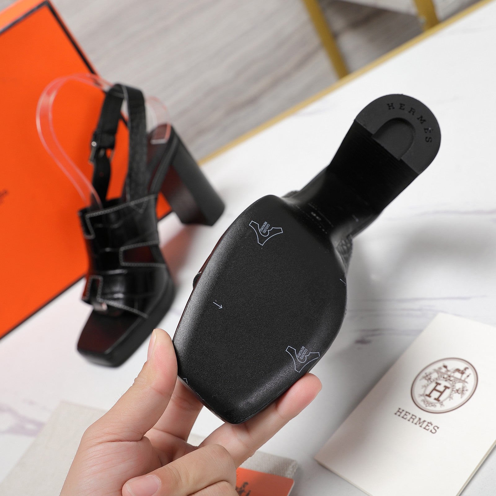 ERIS 95 SANDAL BLACK CALFSKIN PATTERNED
