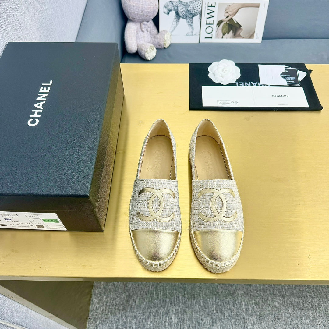 espadrilles raffia gold metalic calfskin