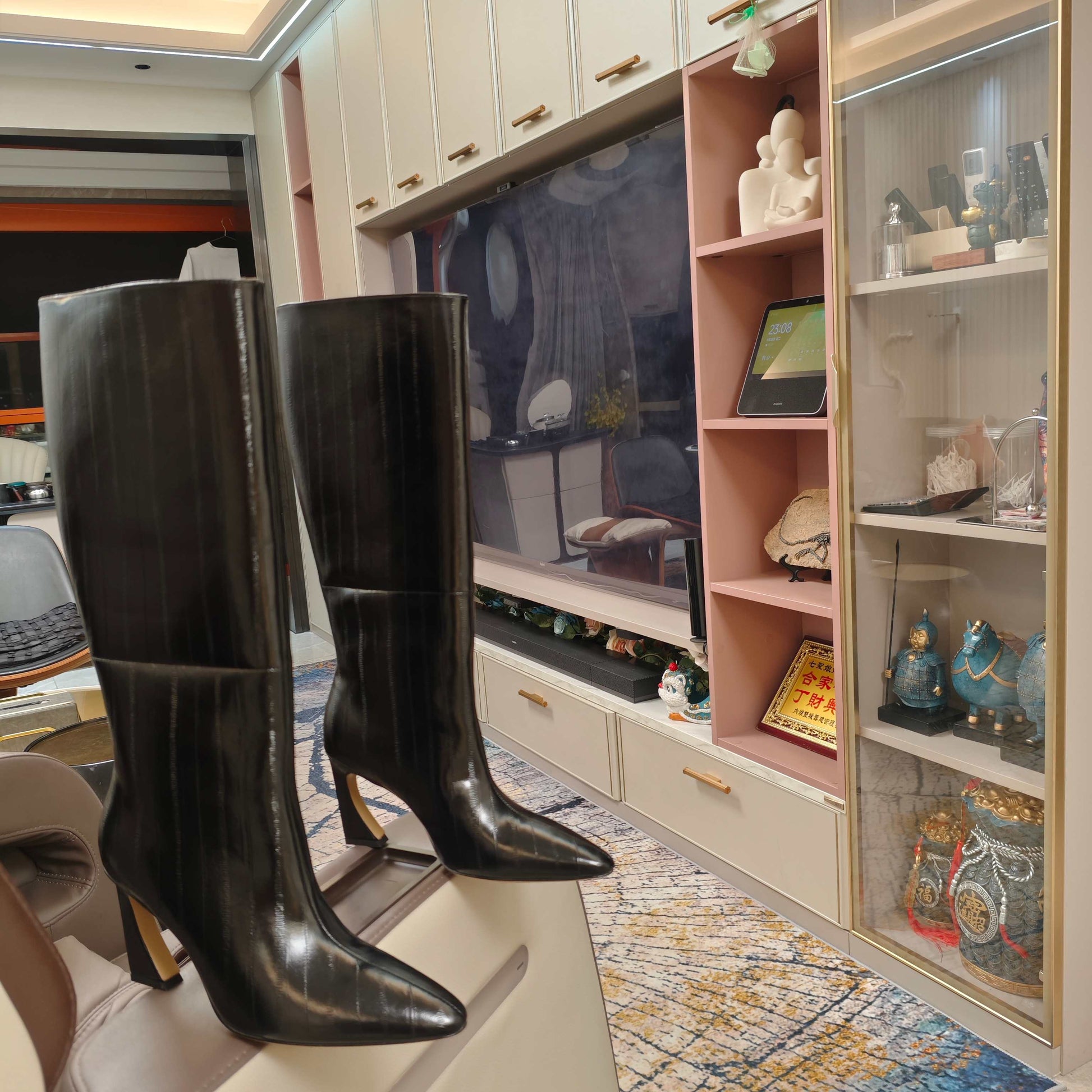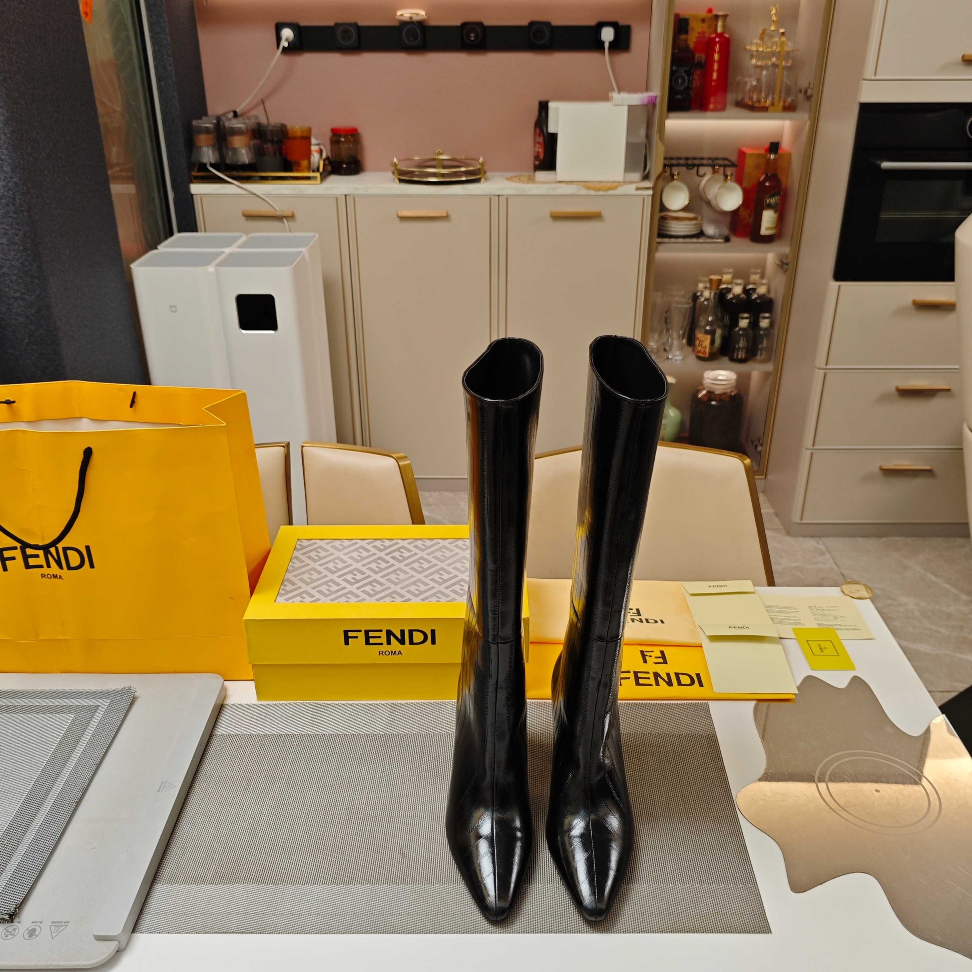 Fendi 25ss high-heeled boots black sheepskin 502718