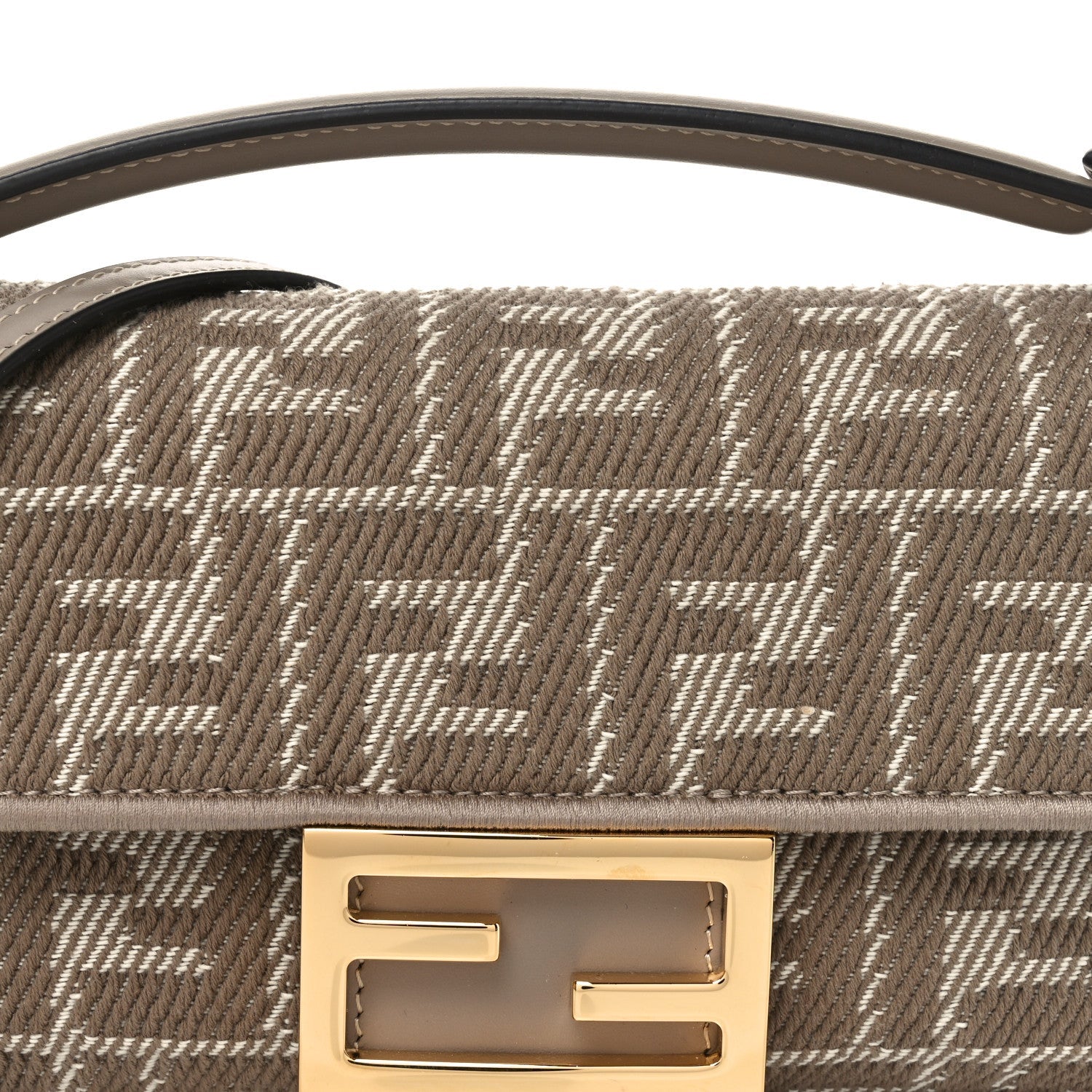 Denim Jacquard FF Effect Vitello Grace Mini Baguette Dove White Dove