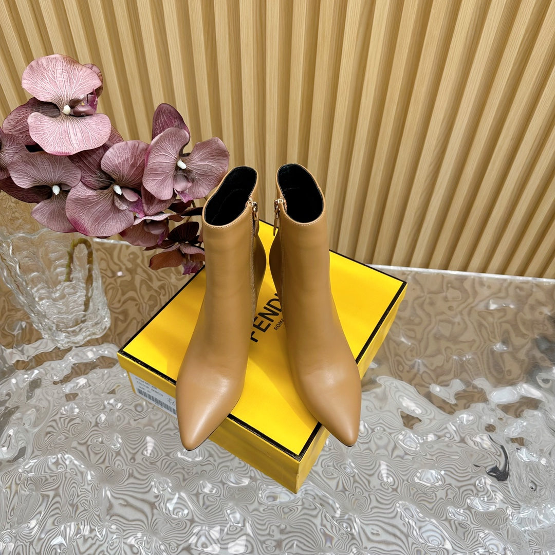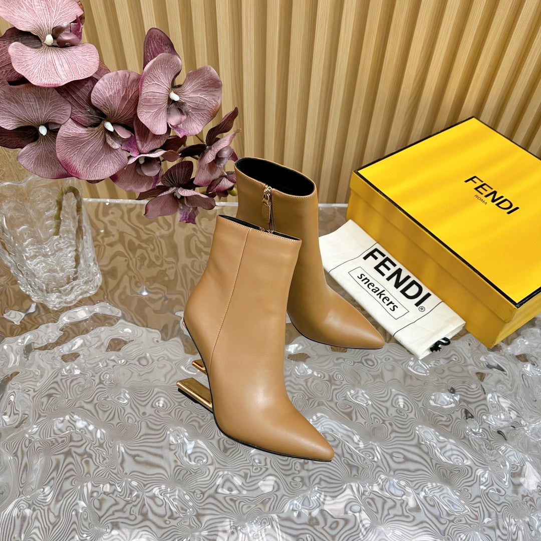 FENDI FIRST 80 MM BOOTS IN CIDER BROWN CALFSKIN WITH GOLD HARDWARE