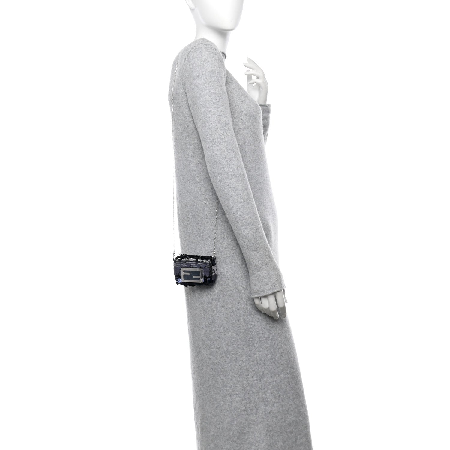 Sequin Paillettes Shiny Nappa Sex and the City Nano Maxi Buckle Baguette Charm Midnight