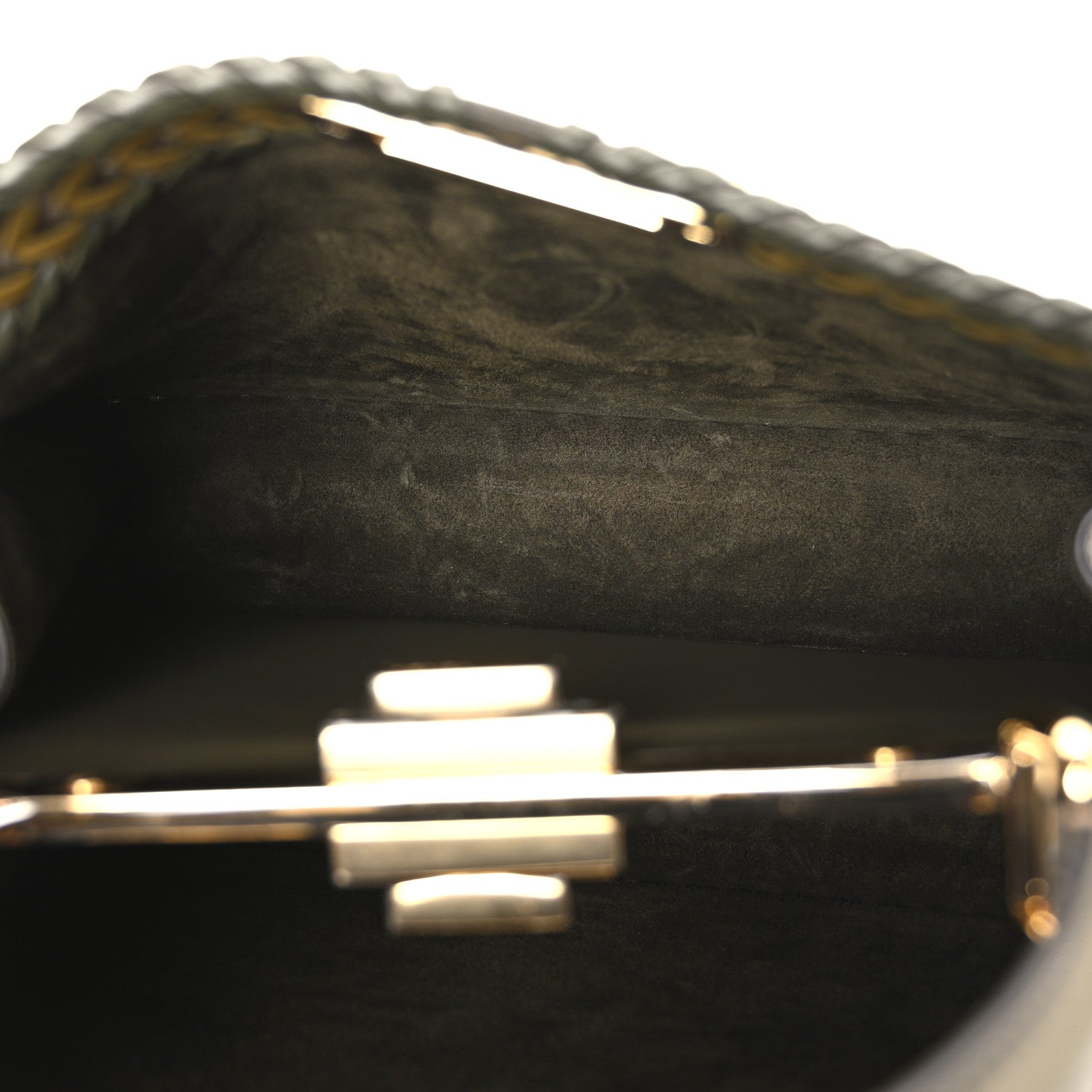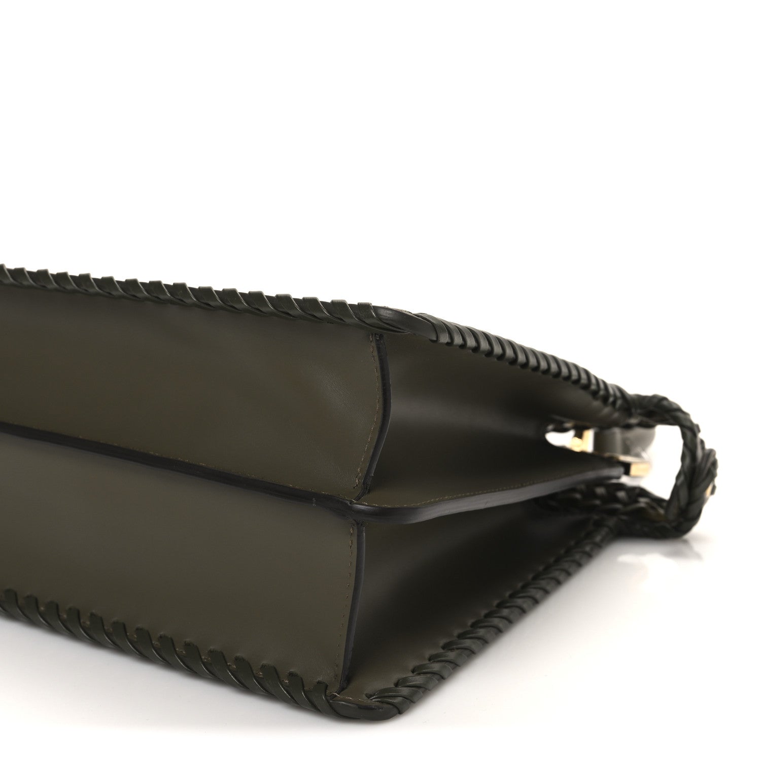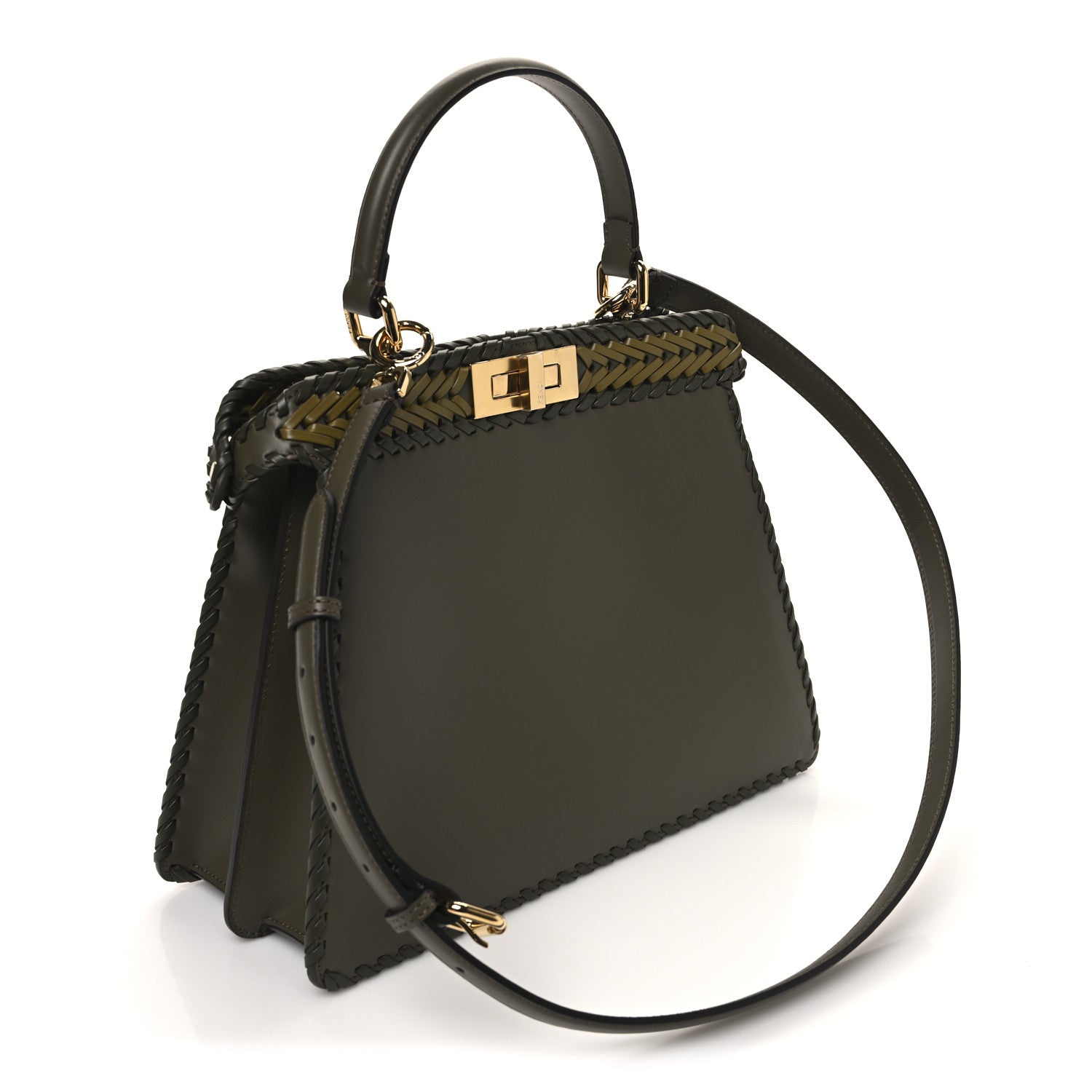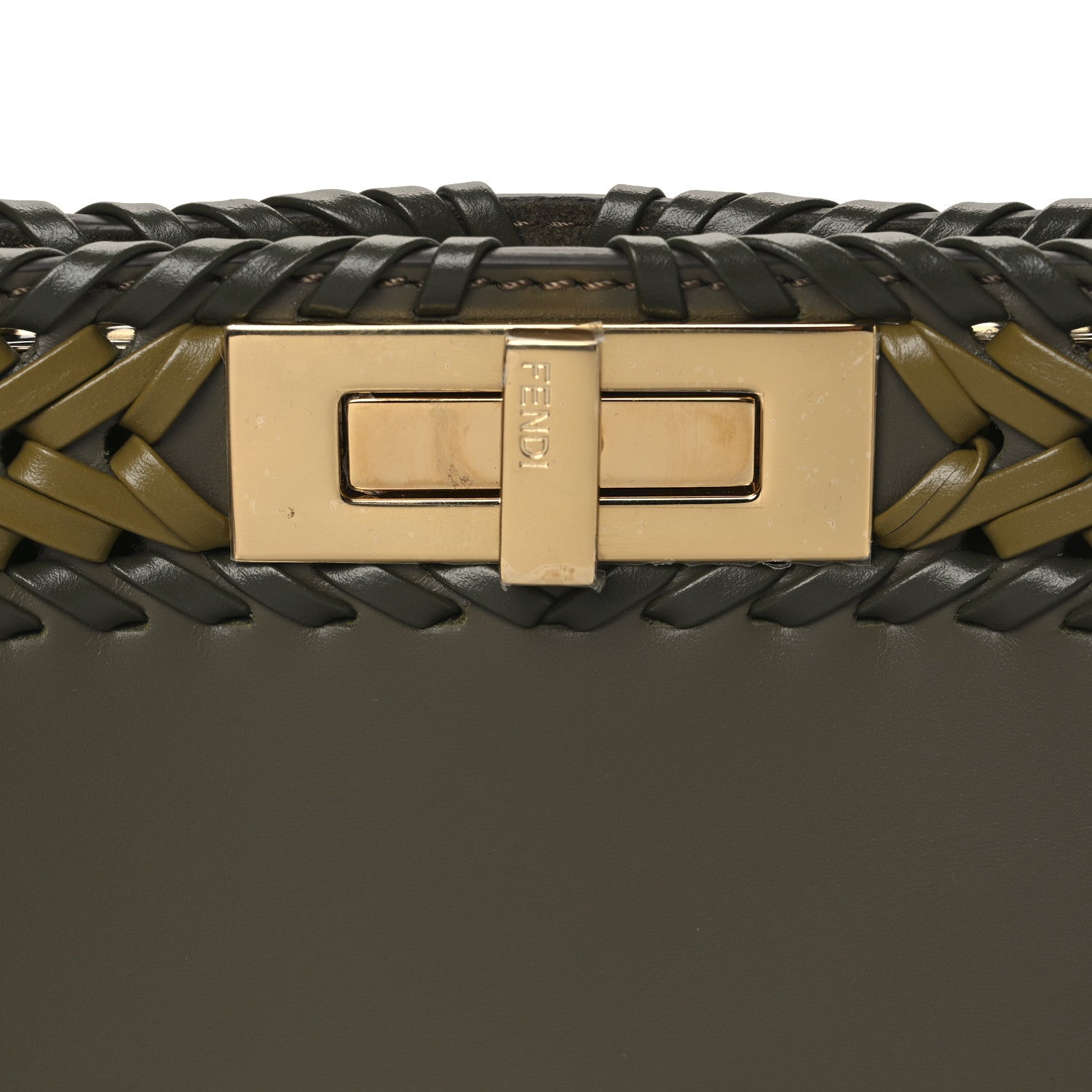 Vitello King Ceylon Shiny Nappa Woven Medium Peekaboo I SEE U Satchel Avocado Cedro Camaleonte
