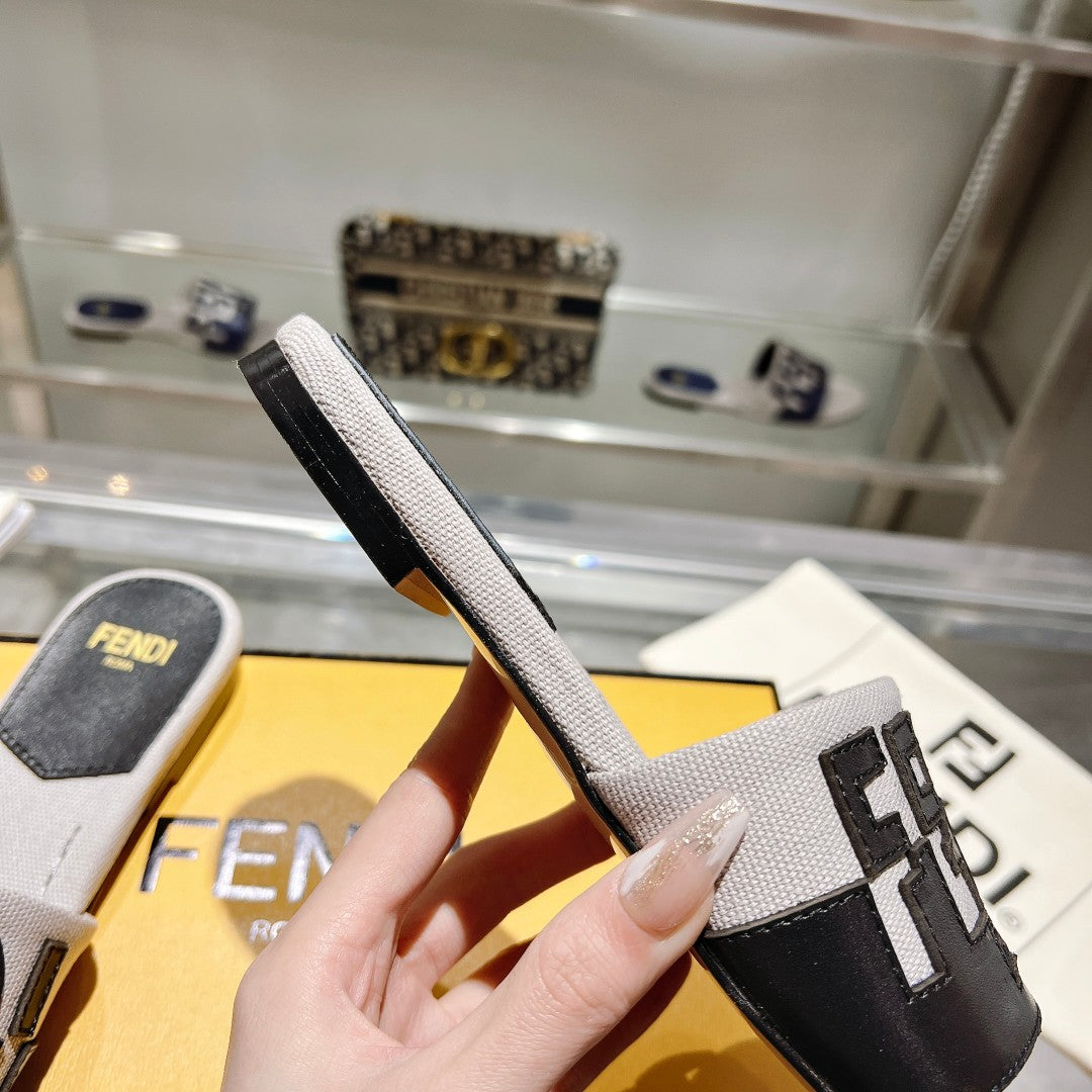 FF Women Roma Signature Black Grey Canvas Leather Slide