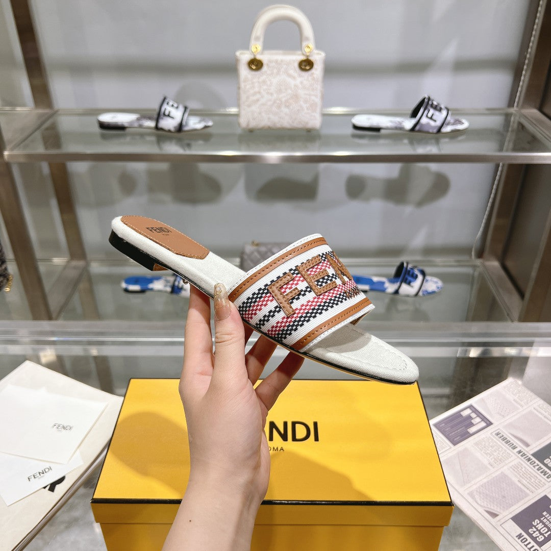 FF Women Signature Slides Tan White Canvas Slide