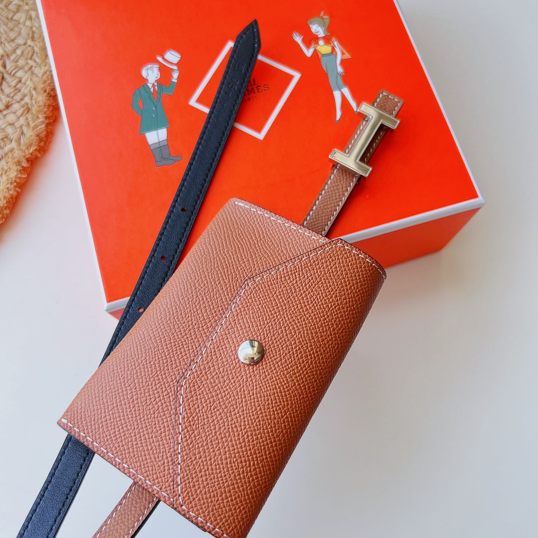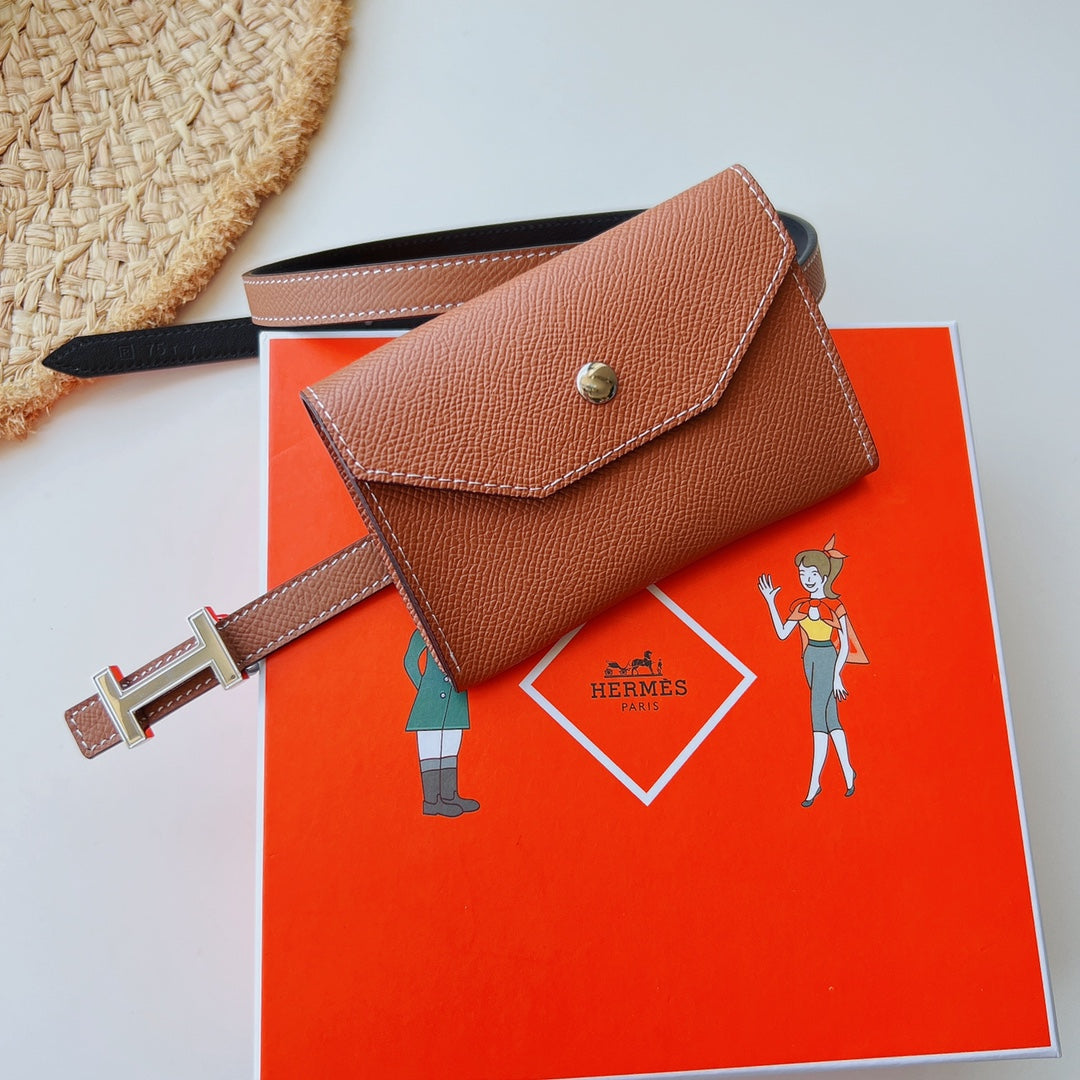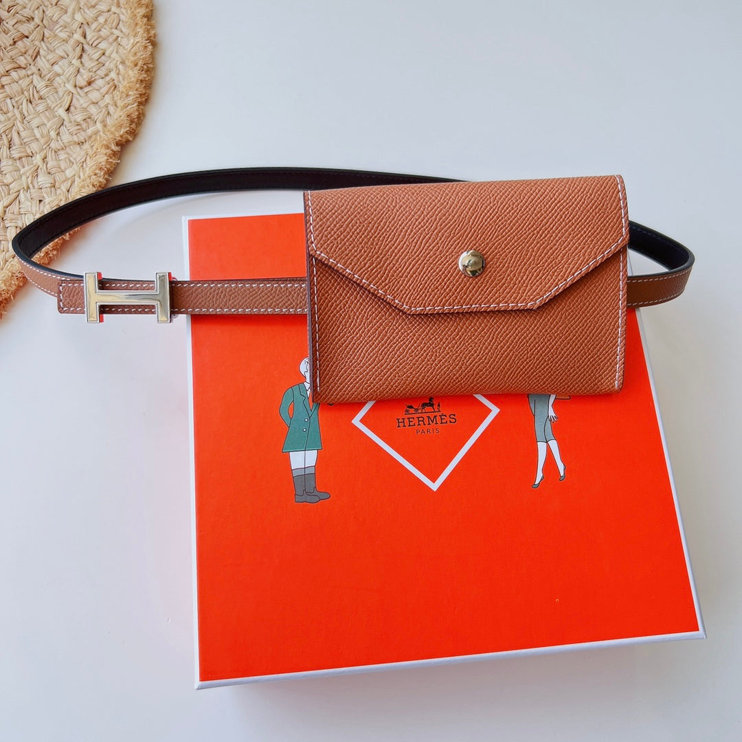 focus belt 13mm with kelly pocket brown epsom silver buckle