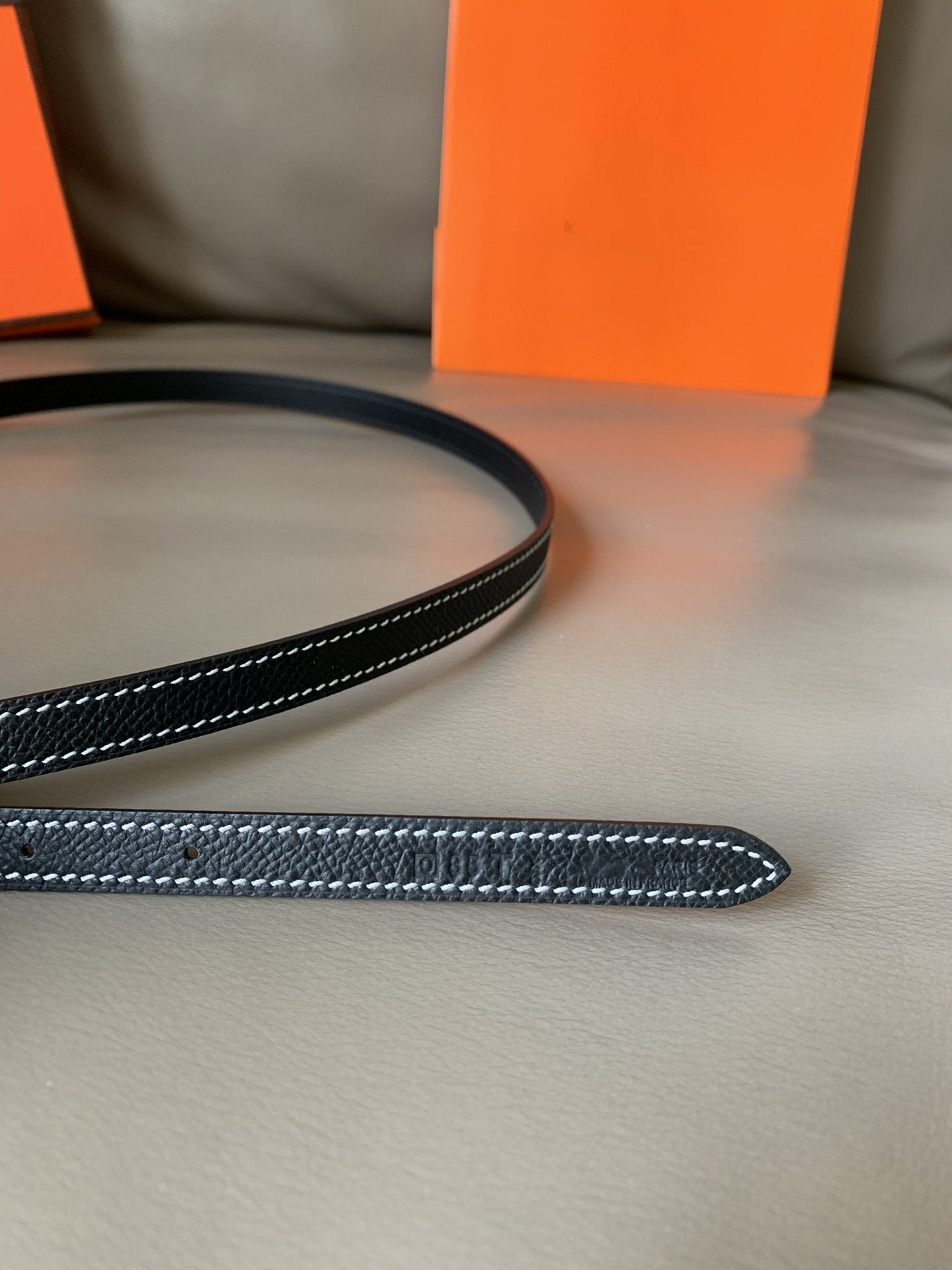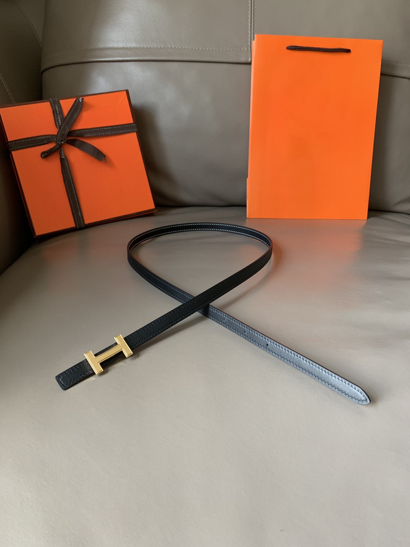 • H Buckle in permabrass plated metal.