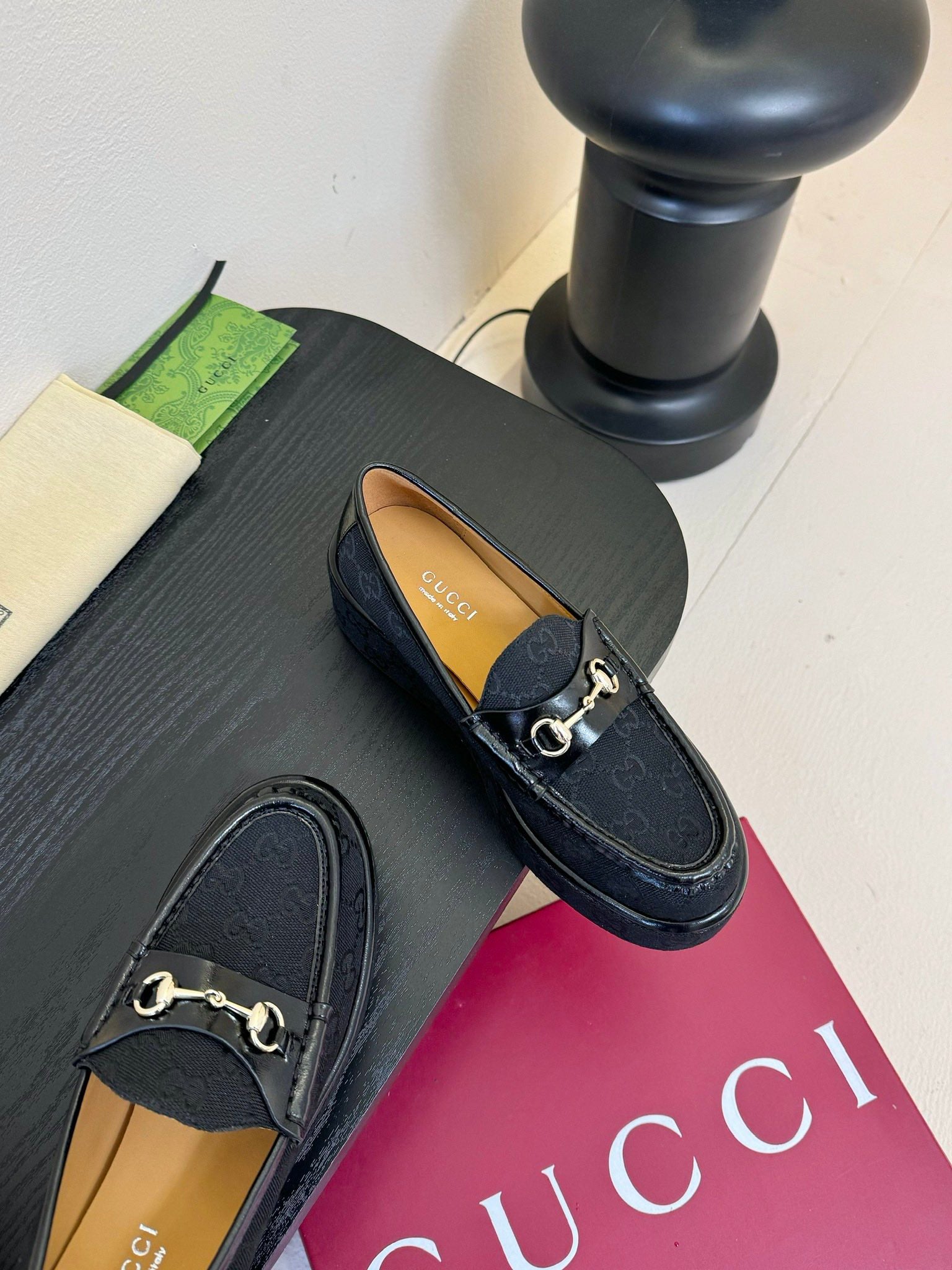GC 2025 Horsebit Wedge Loafer Navy Blue Canvas Cowhide 296841