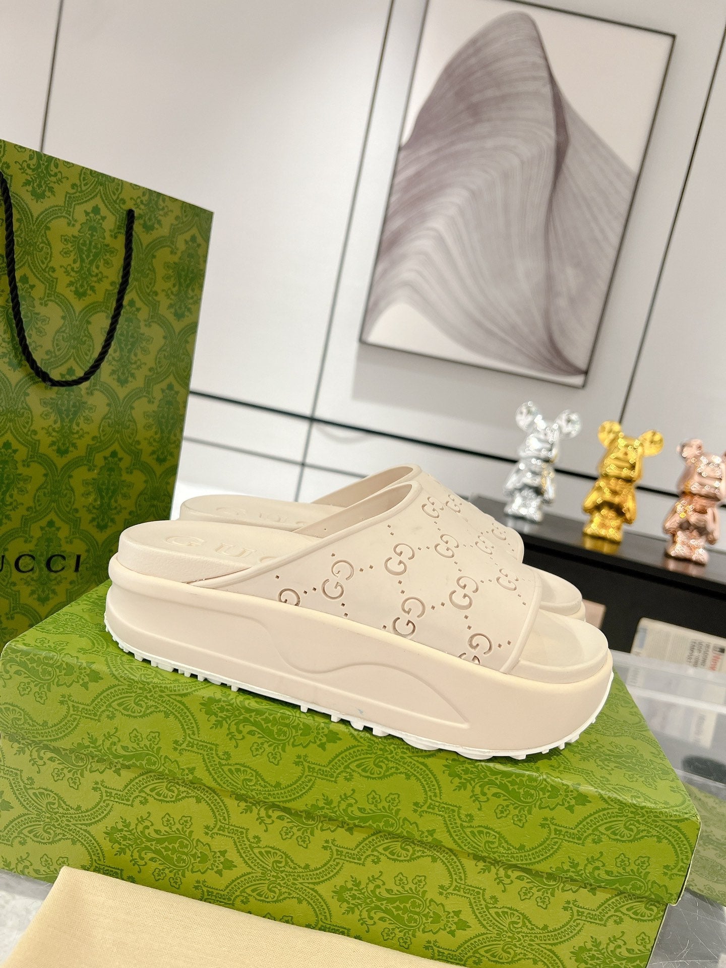GC 25 50mm Monogram Slide Sandal Beige Cowhide 292393