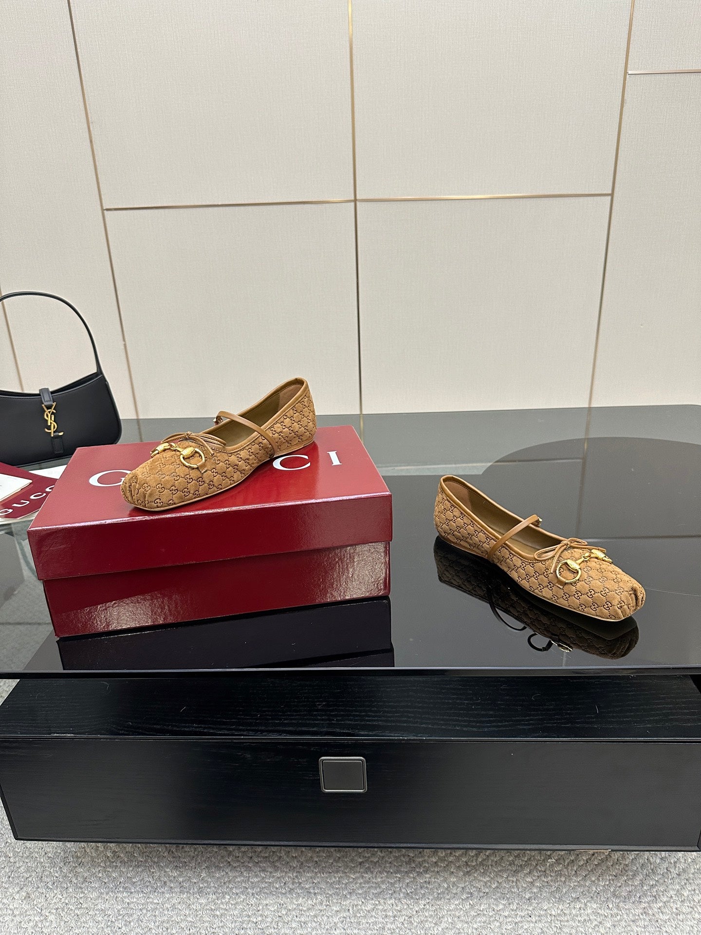 GC 25 Horsebit Ballet Flat Dark Brown Monogram Suede