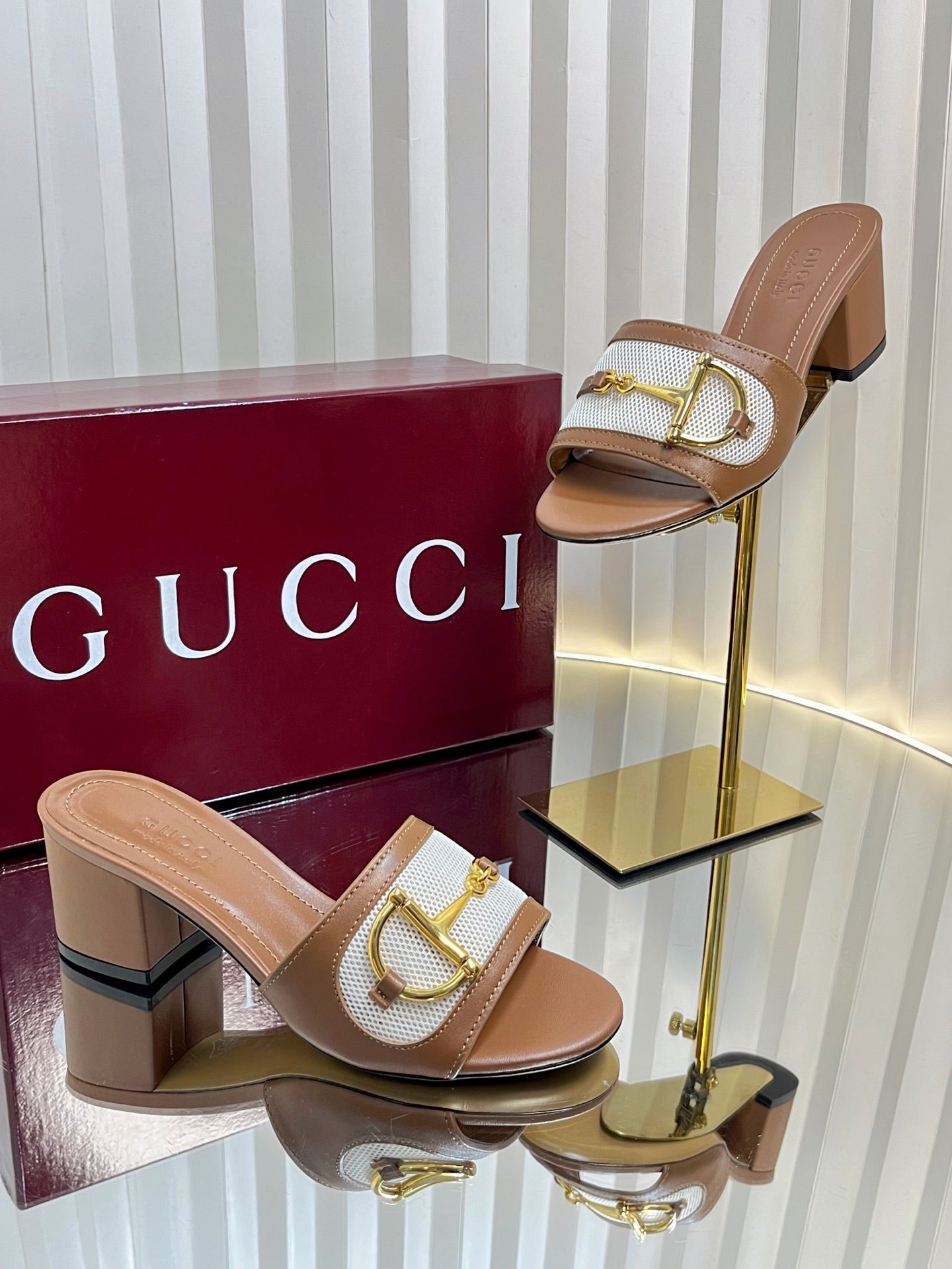 GC 25 Horsebit GG 50mm Sandals Brown Canvas Sheepskin 294666