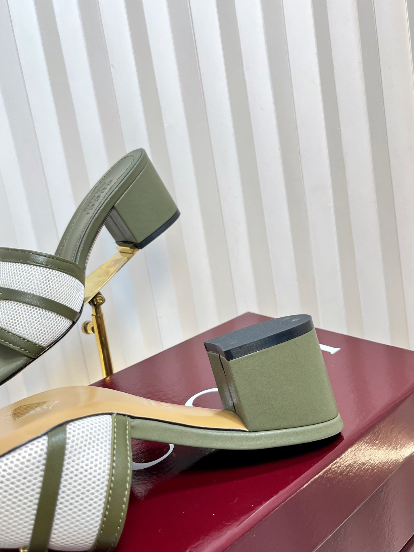 GC 25 Horsebit GG 50mm Sandals Dark Green Canvas Sheepskin 294667