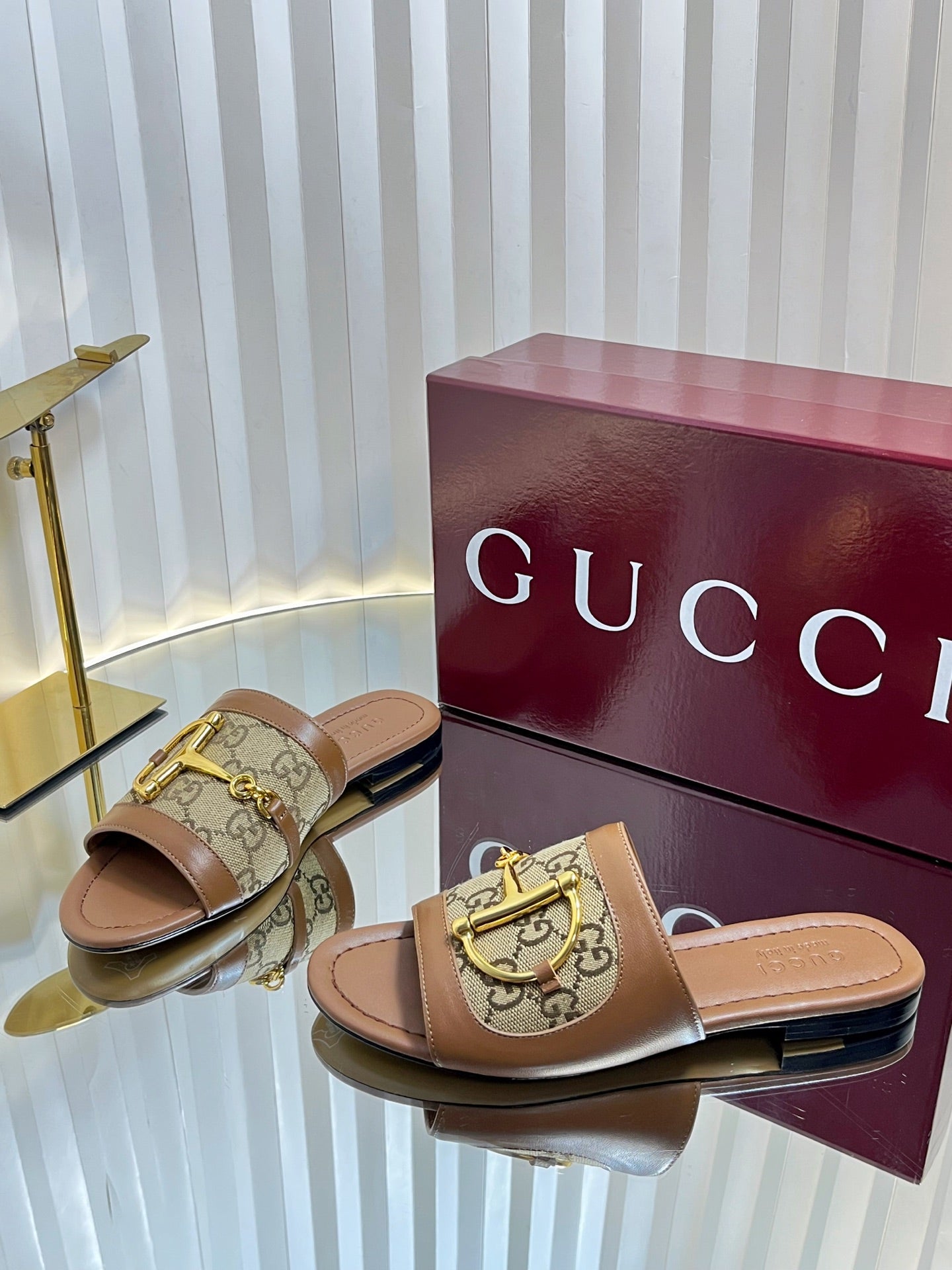 GC 25 Horsebit GG Sandals Brown Canvas 294674