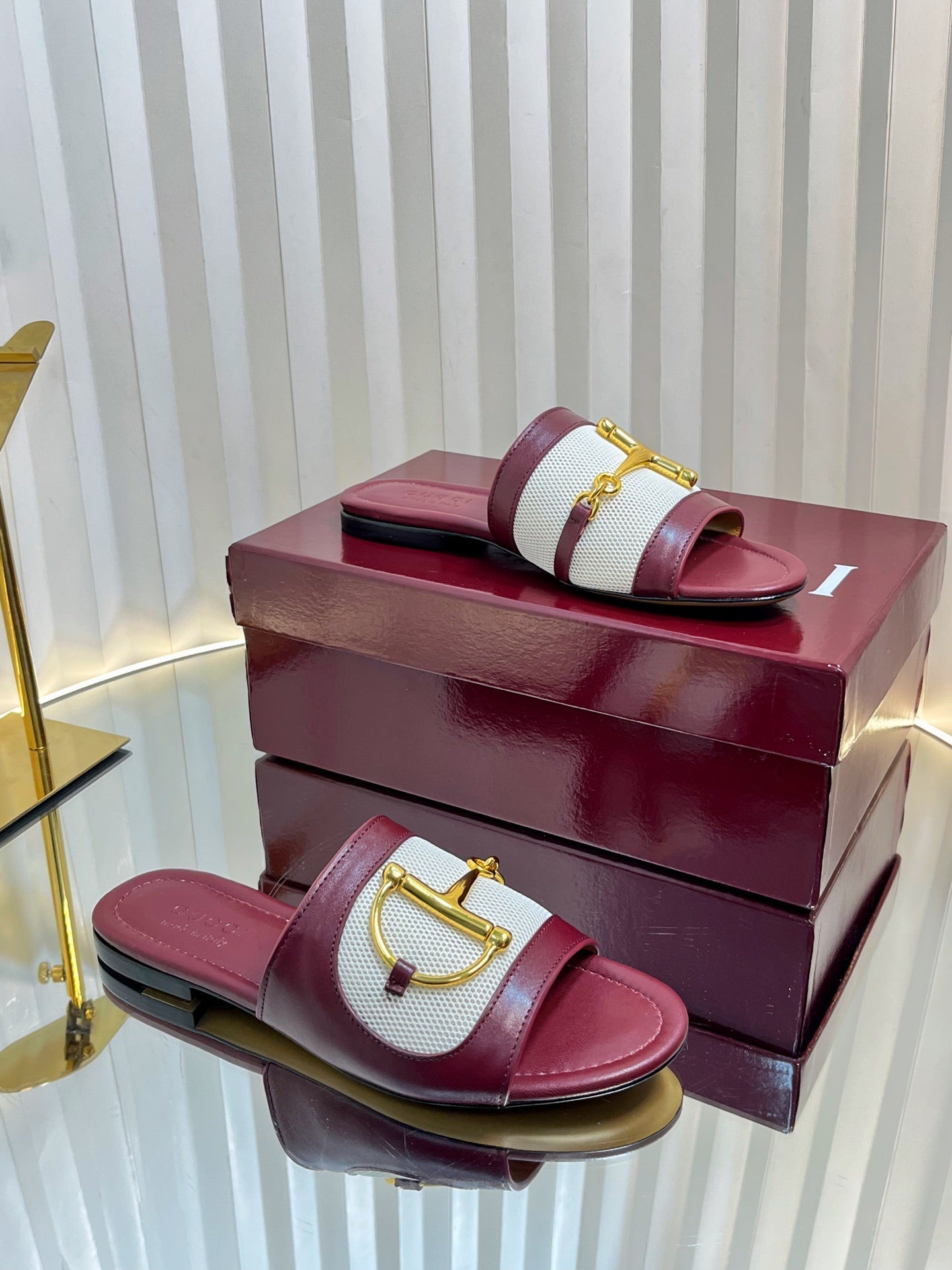GC 25 Horsebit GG Sandals Red Canvas Sheepskin 294661