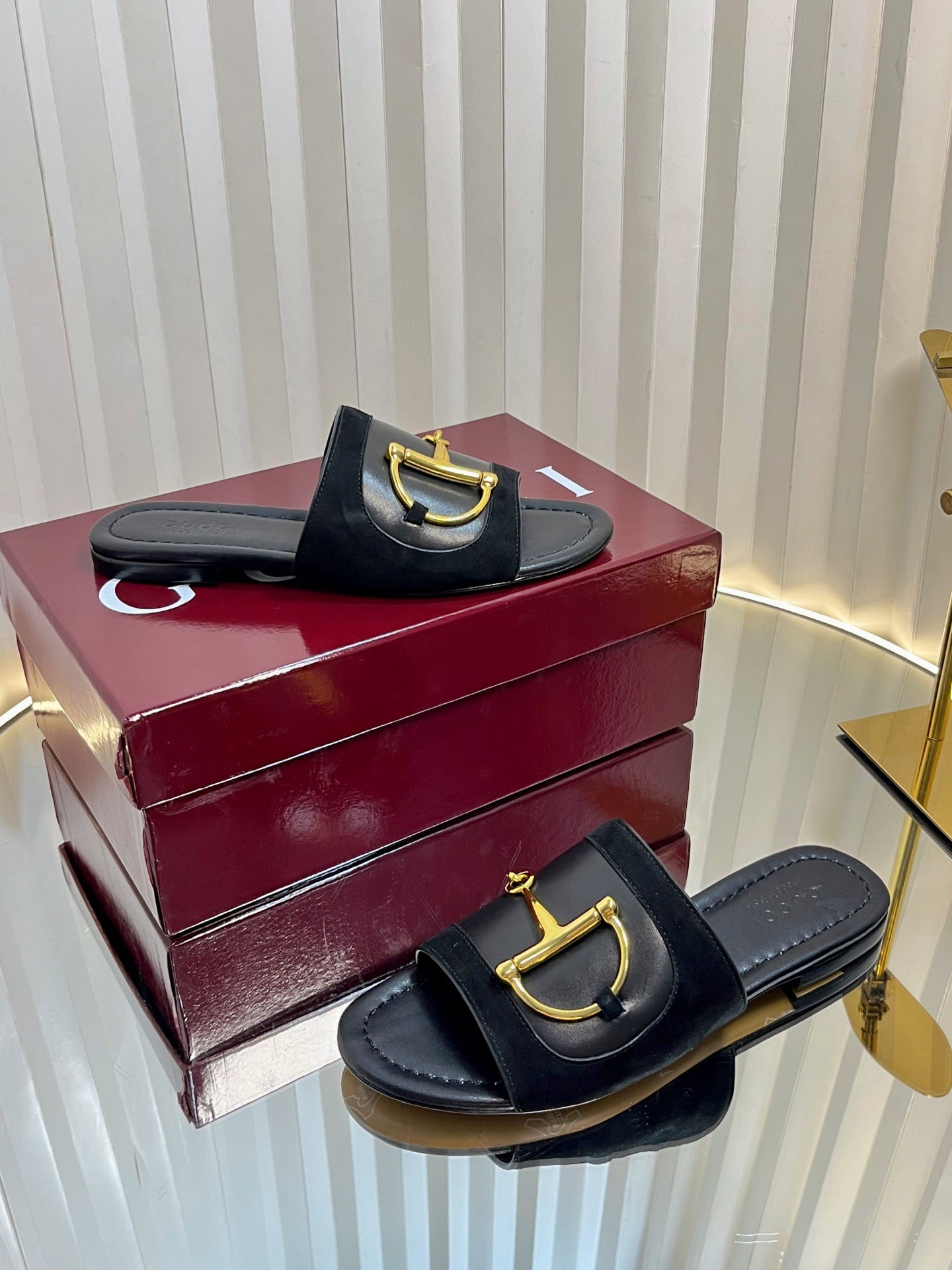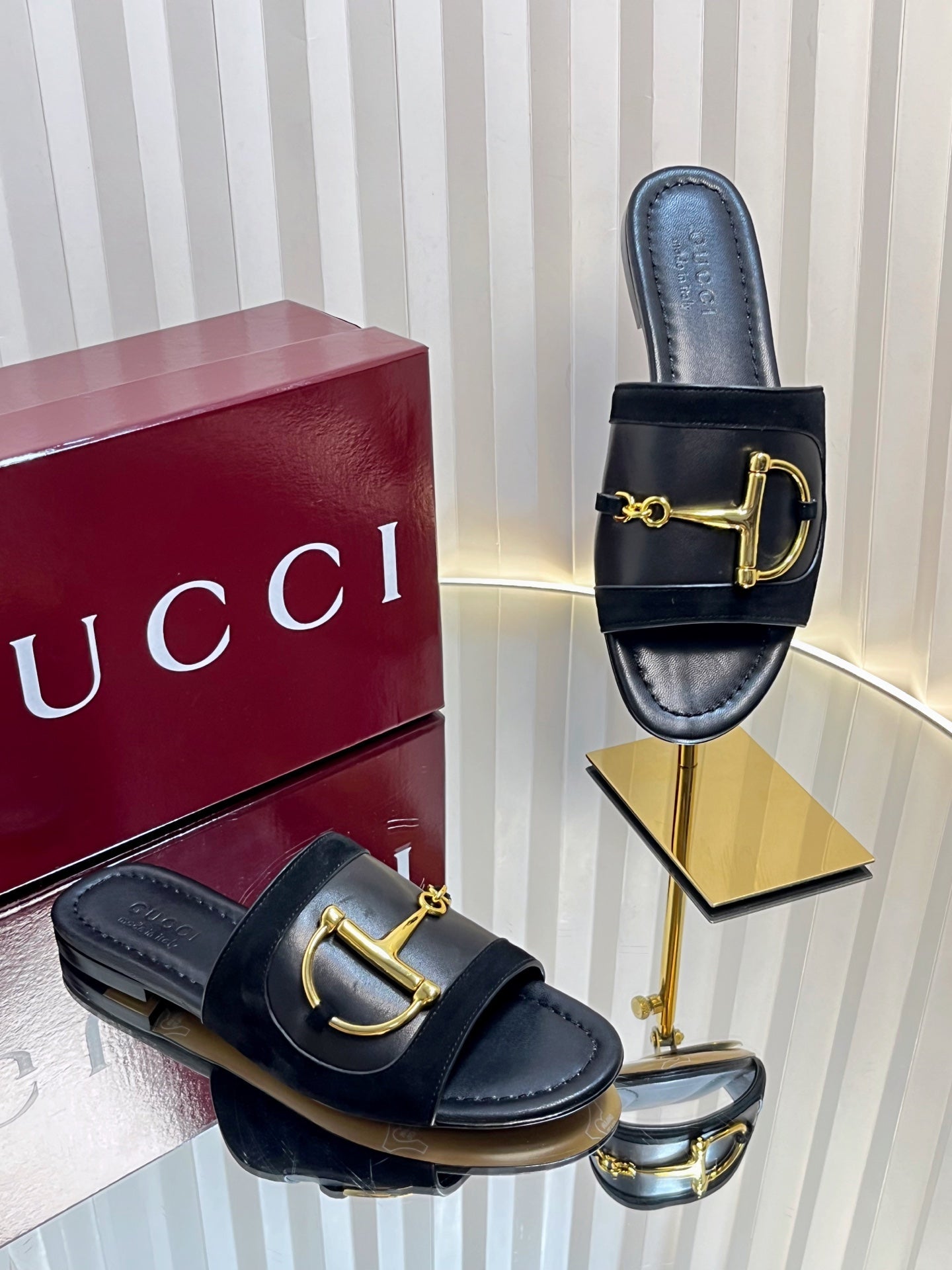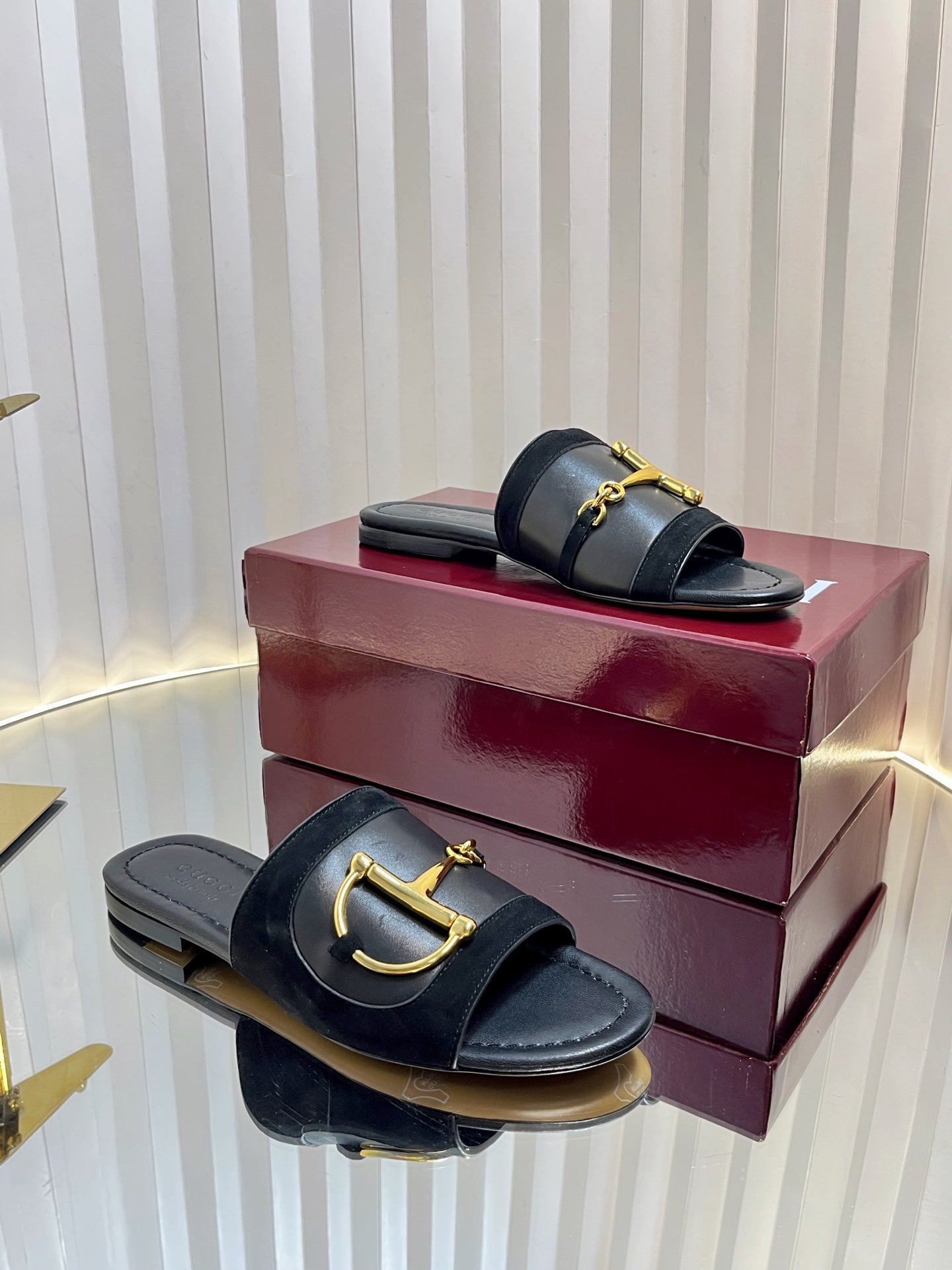 GC 25 Horsebit Sandals 10mm Black Suede Sheepskin 294652