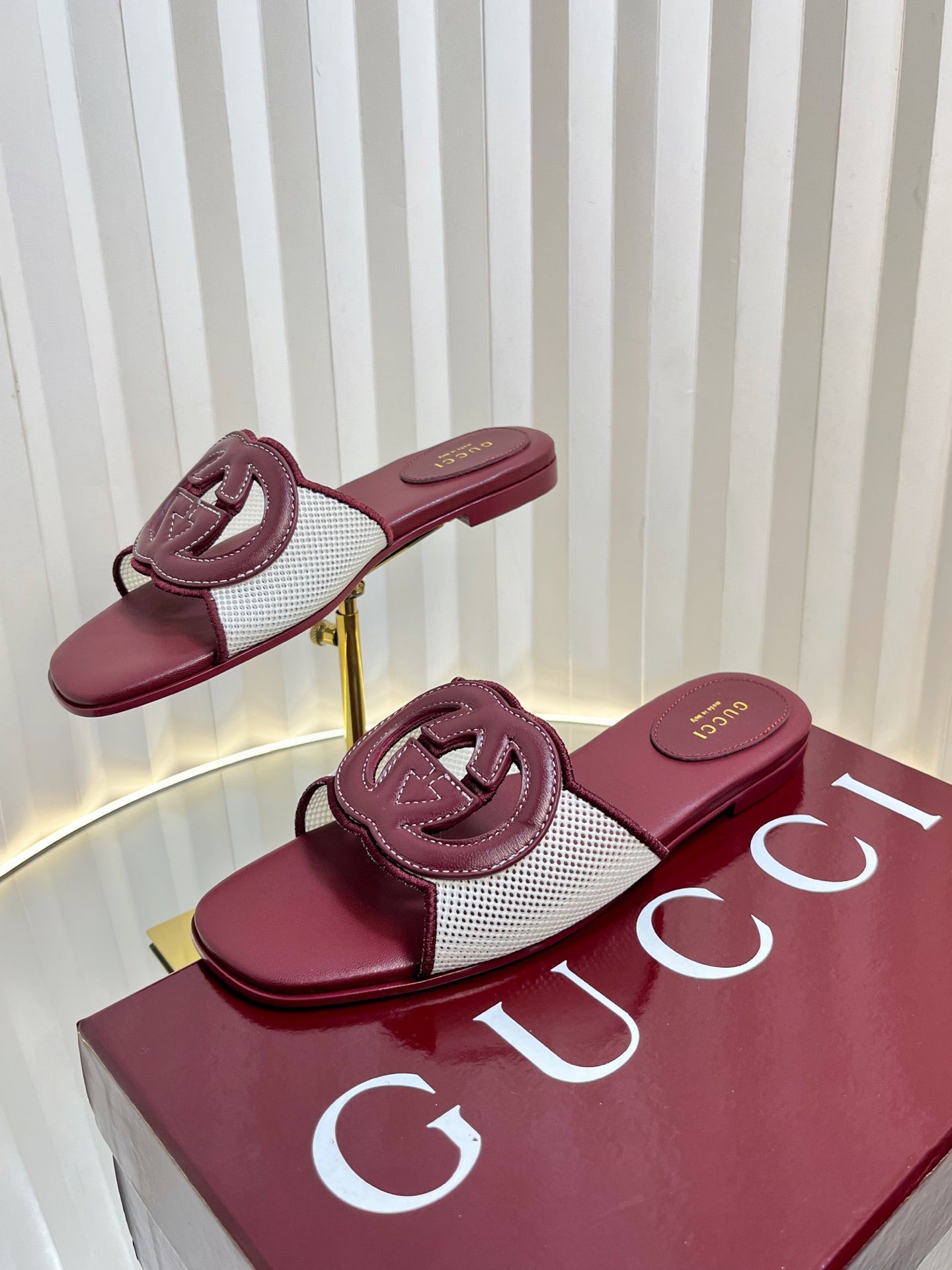 GC 25 Interlocking G Slide Sandal Rosso Ancora Red Canvas Cowhide 294644