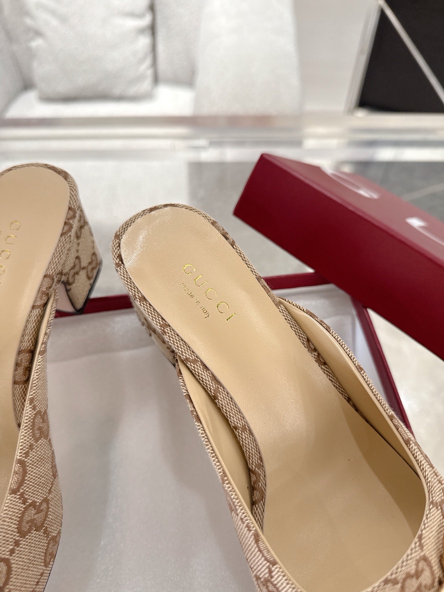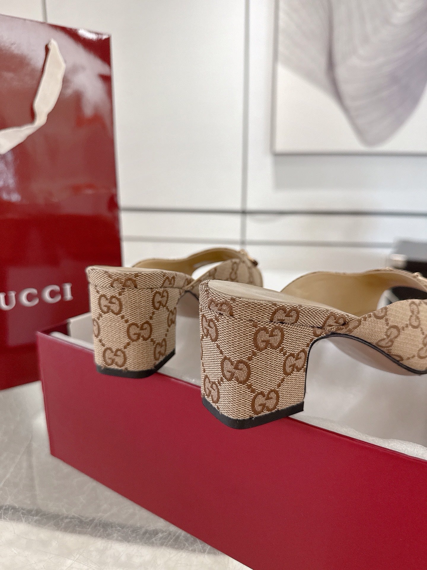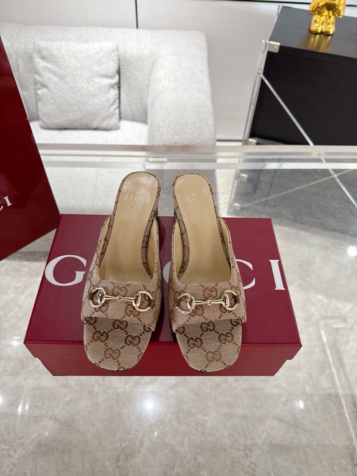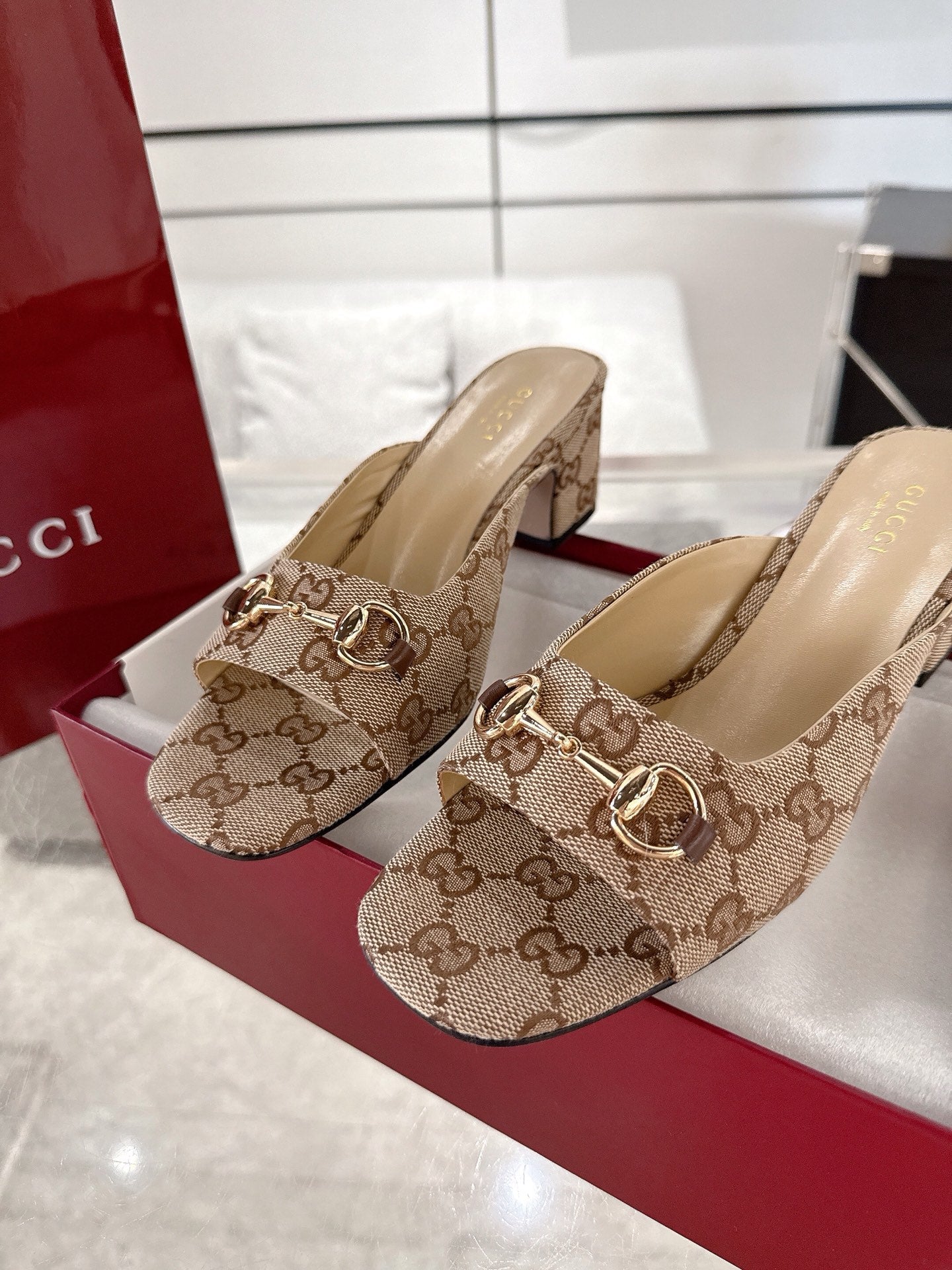 GC Horsebit Slide Brown Canvas Cowhide 292406