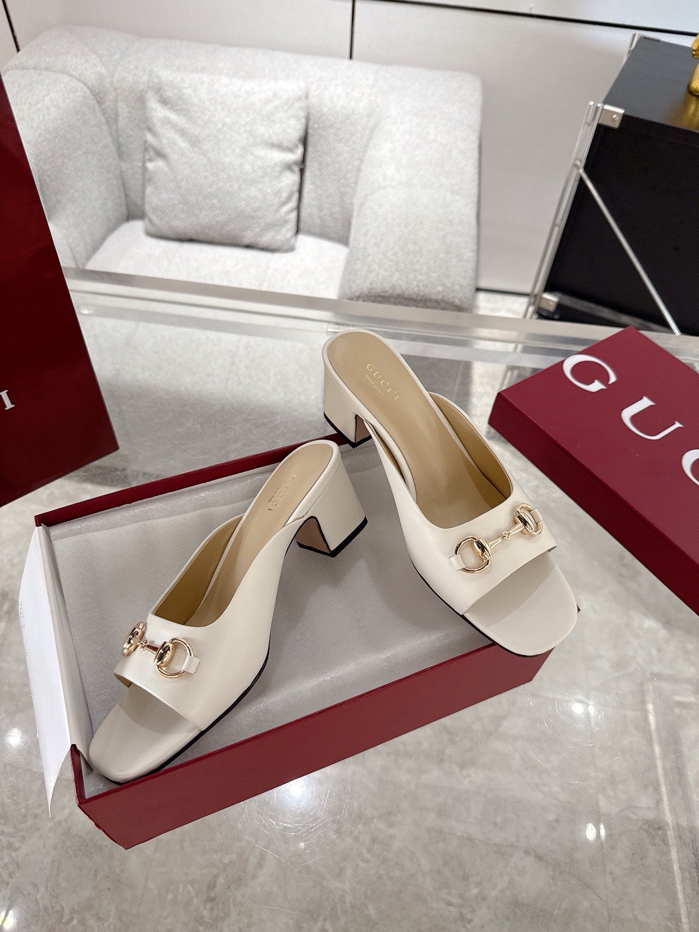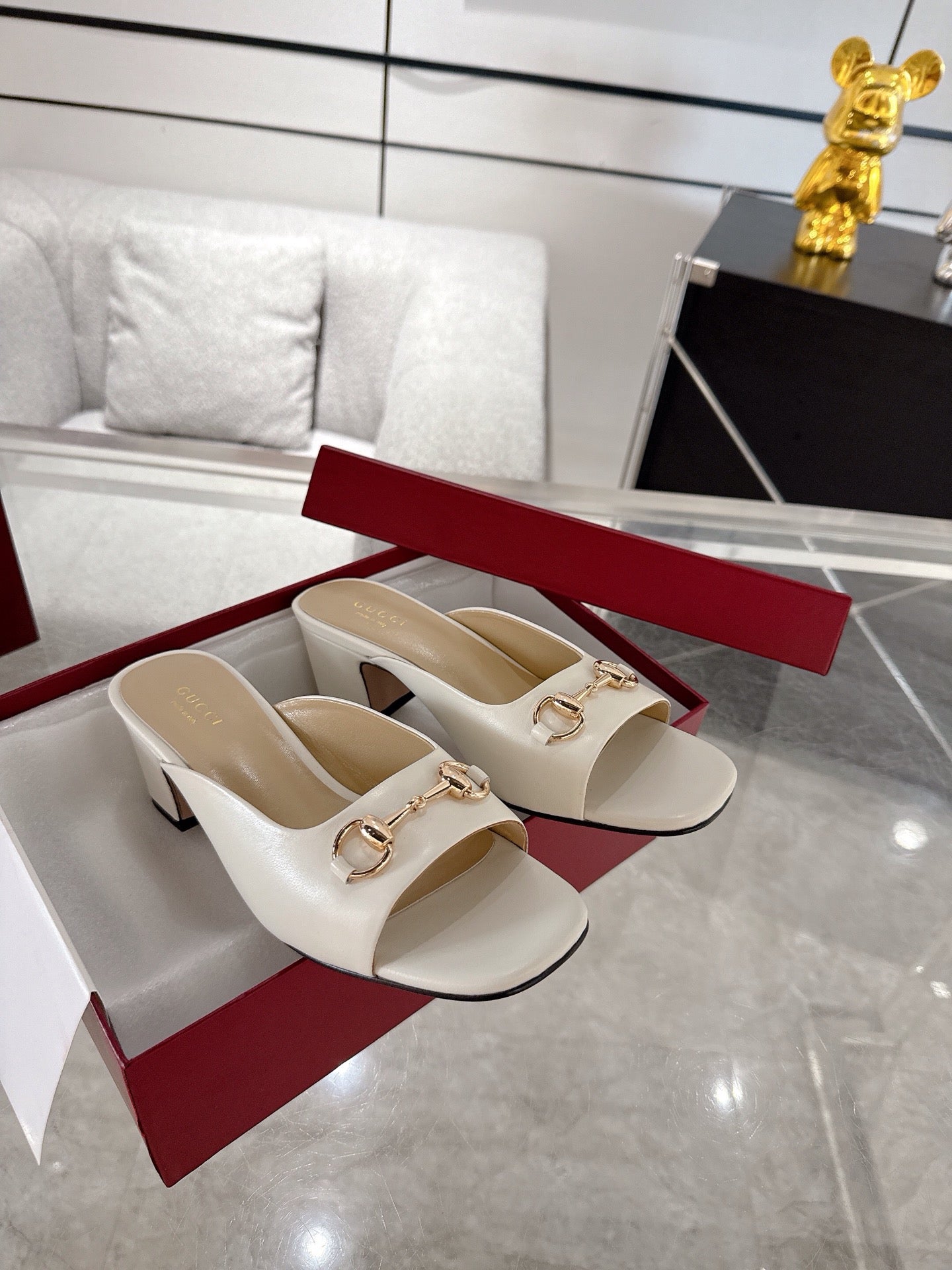GC Horsebit Slide Ivory Cowhide 292403