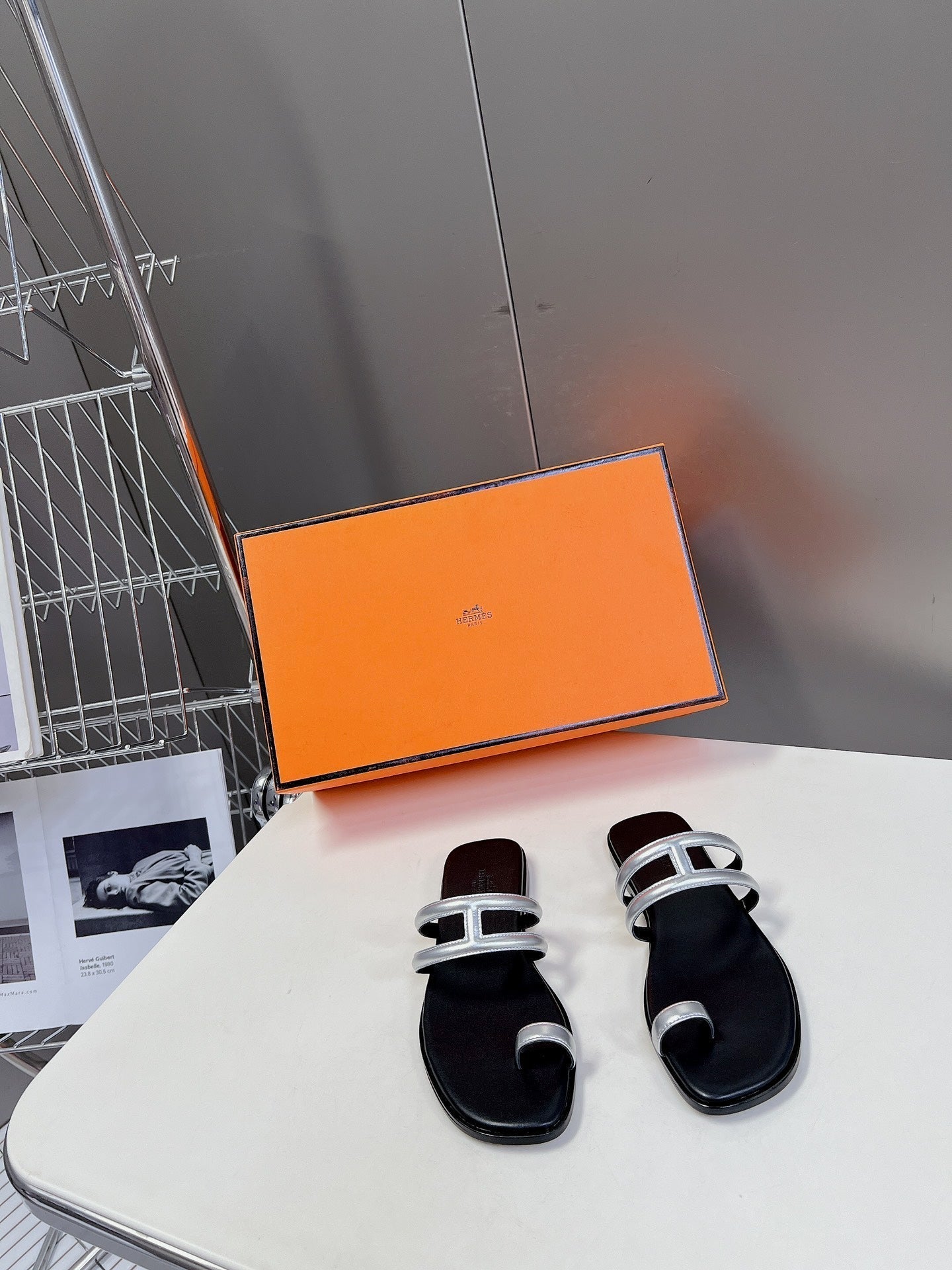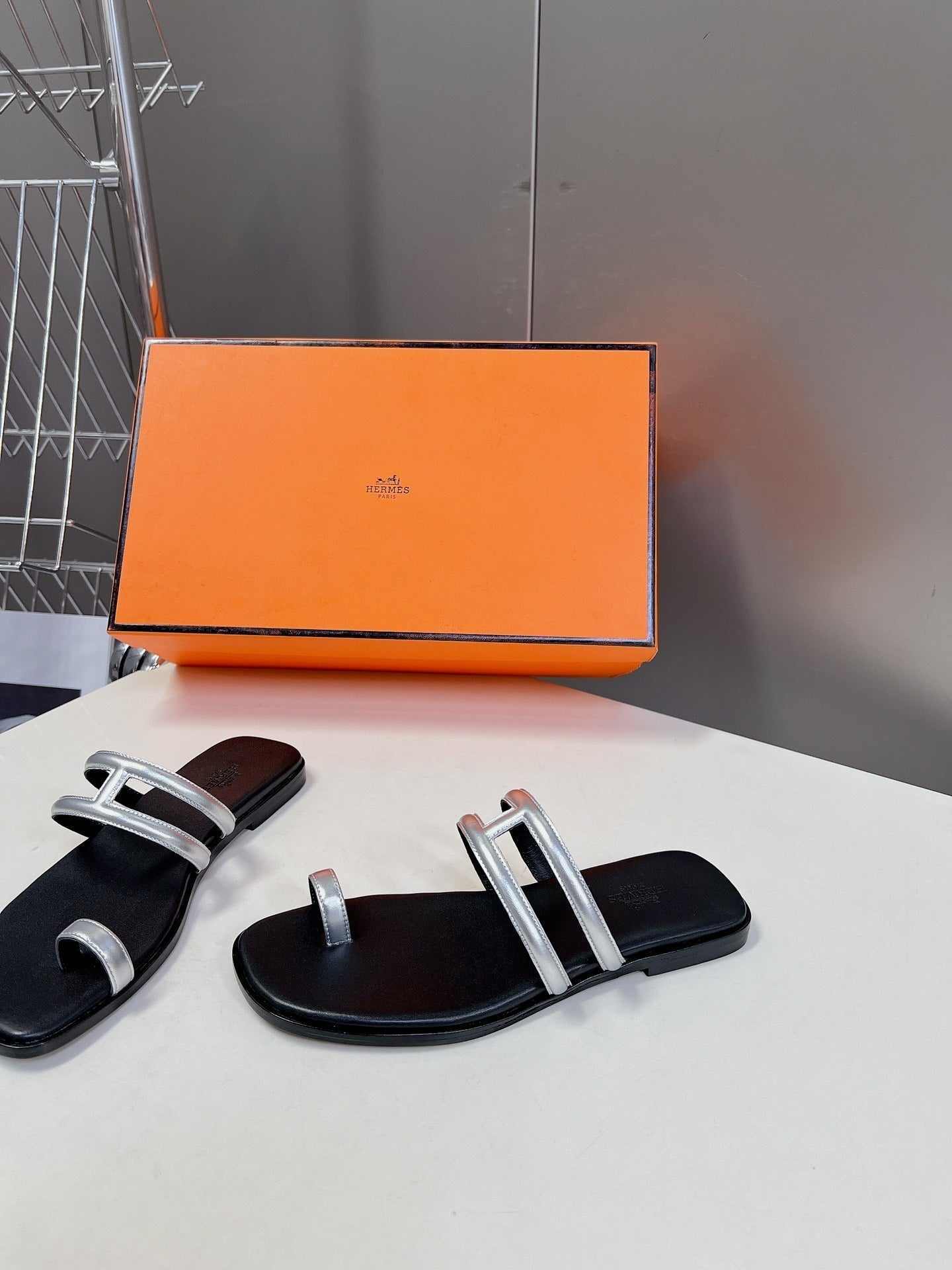 Georgia Sandals Silver Black Calfskin