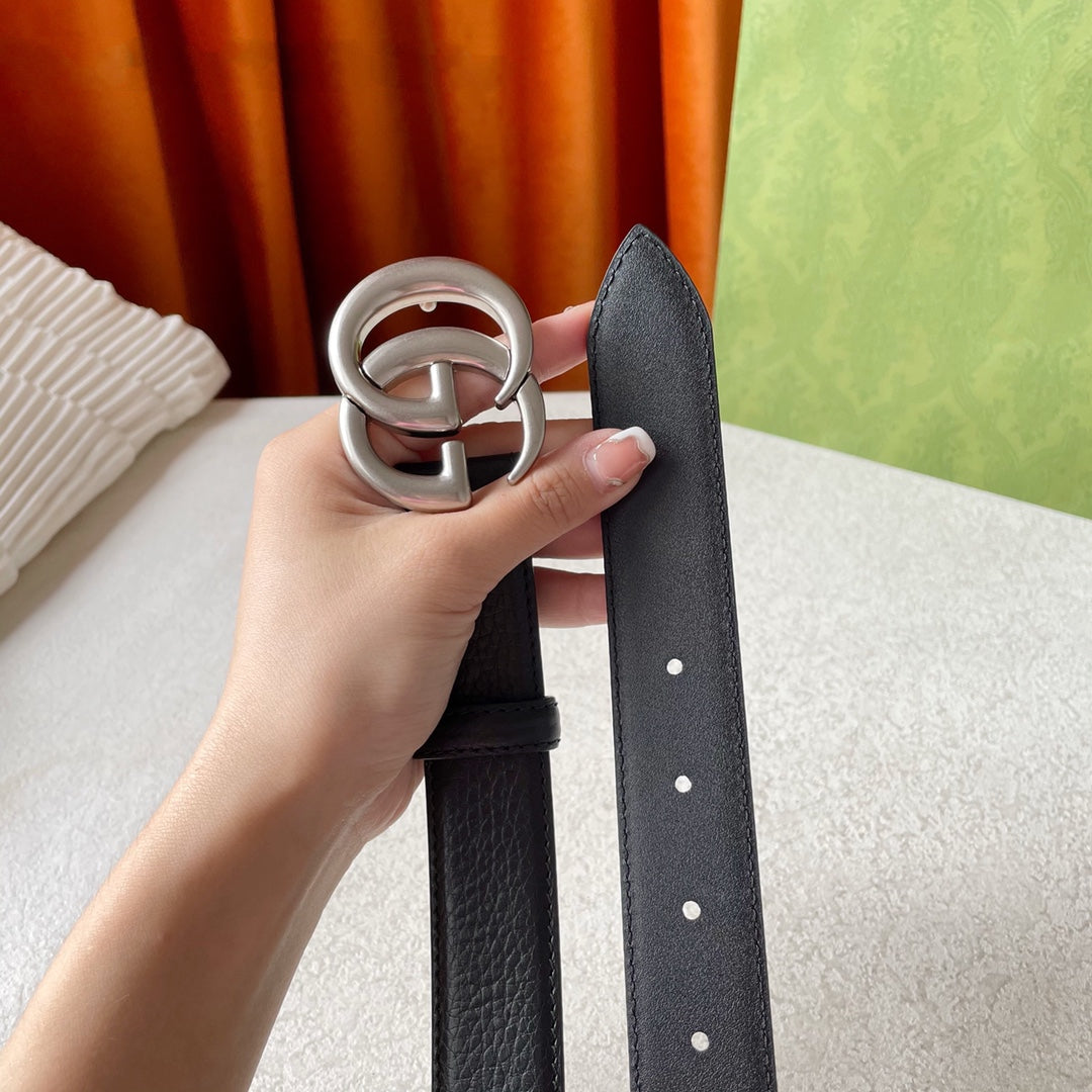 GG BELT DOUBLE G BUCKLE 30MM BLACK LEATHER