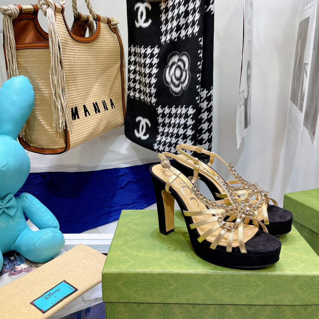 GG CRYSTAL HIGH HEEL SANDAL BLACK LAMBSKIN