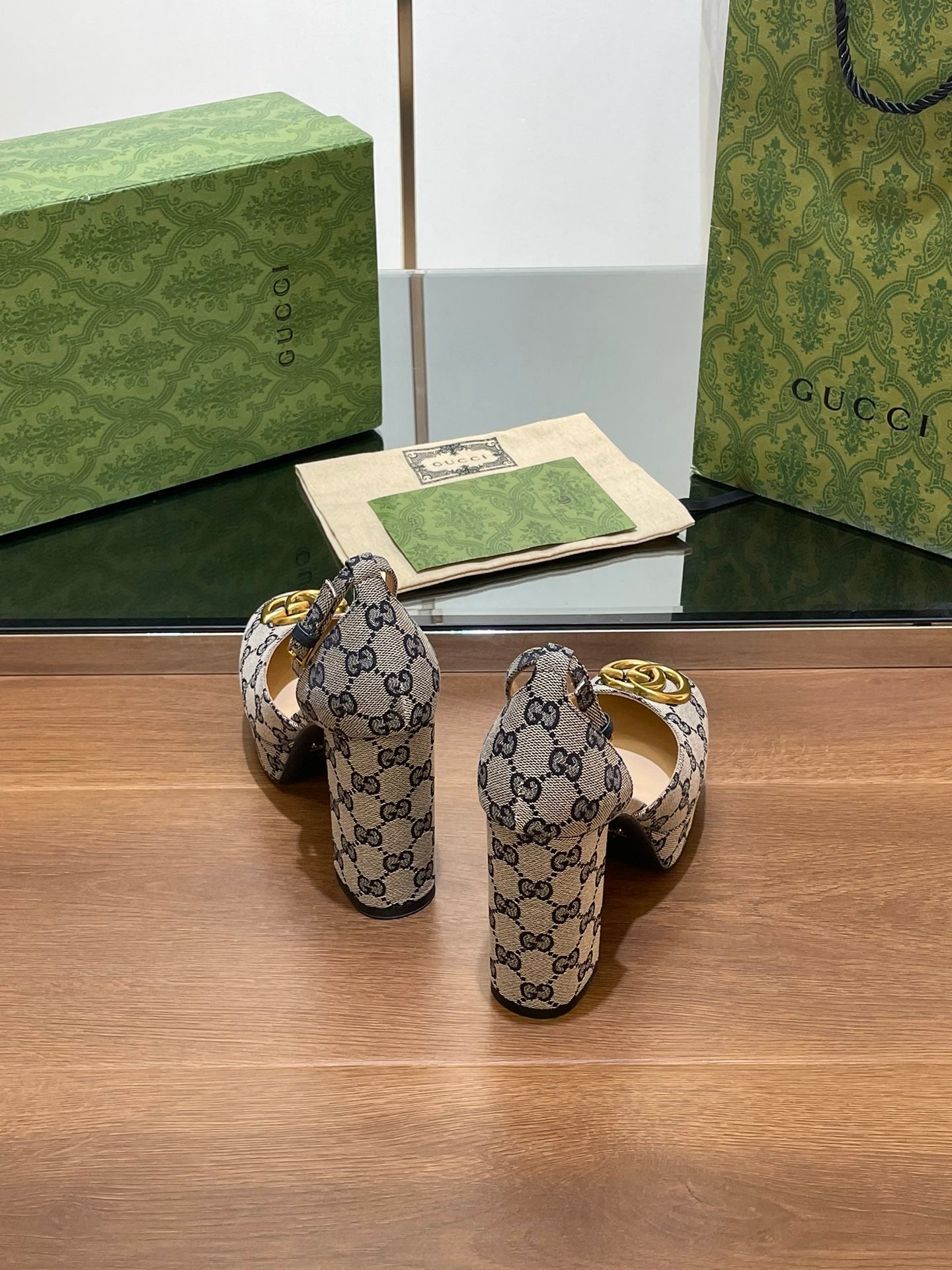 GG HIGH SANDAL 11.5 CM IN BLACK MIX BEIGE MONOGRAM JACQUARD FABRIC
