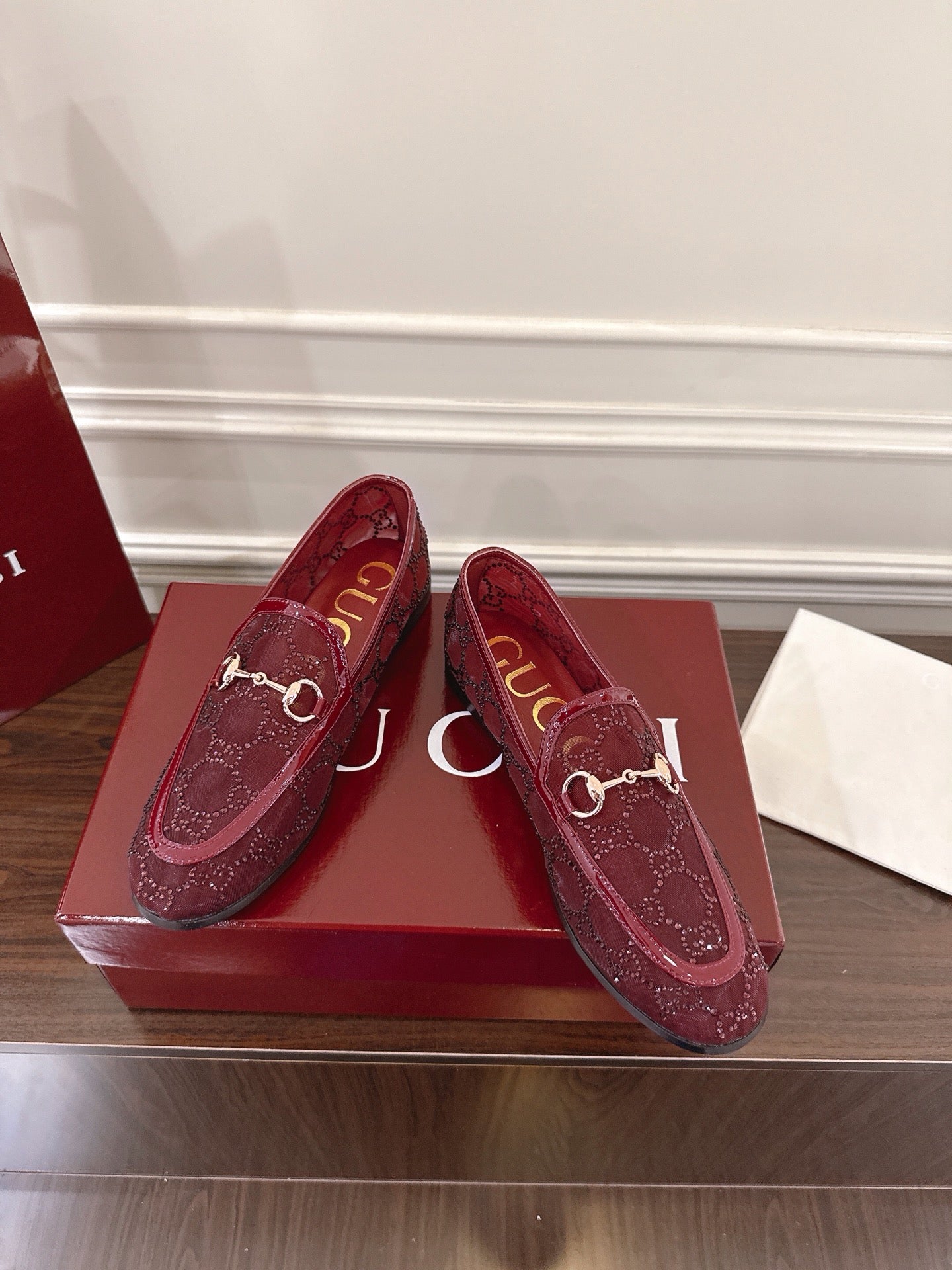 GG Jordaan Loafer Dark Red Mesh With Crystal