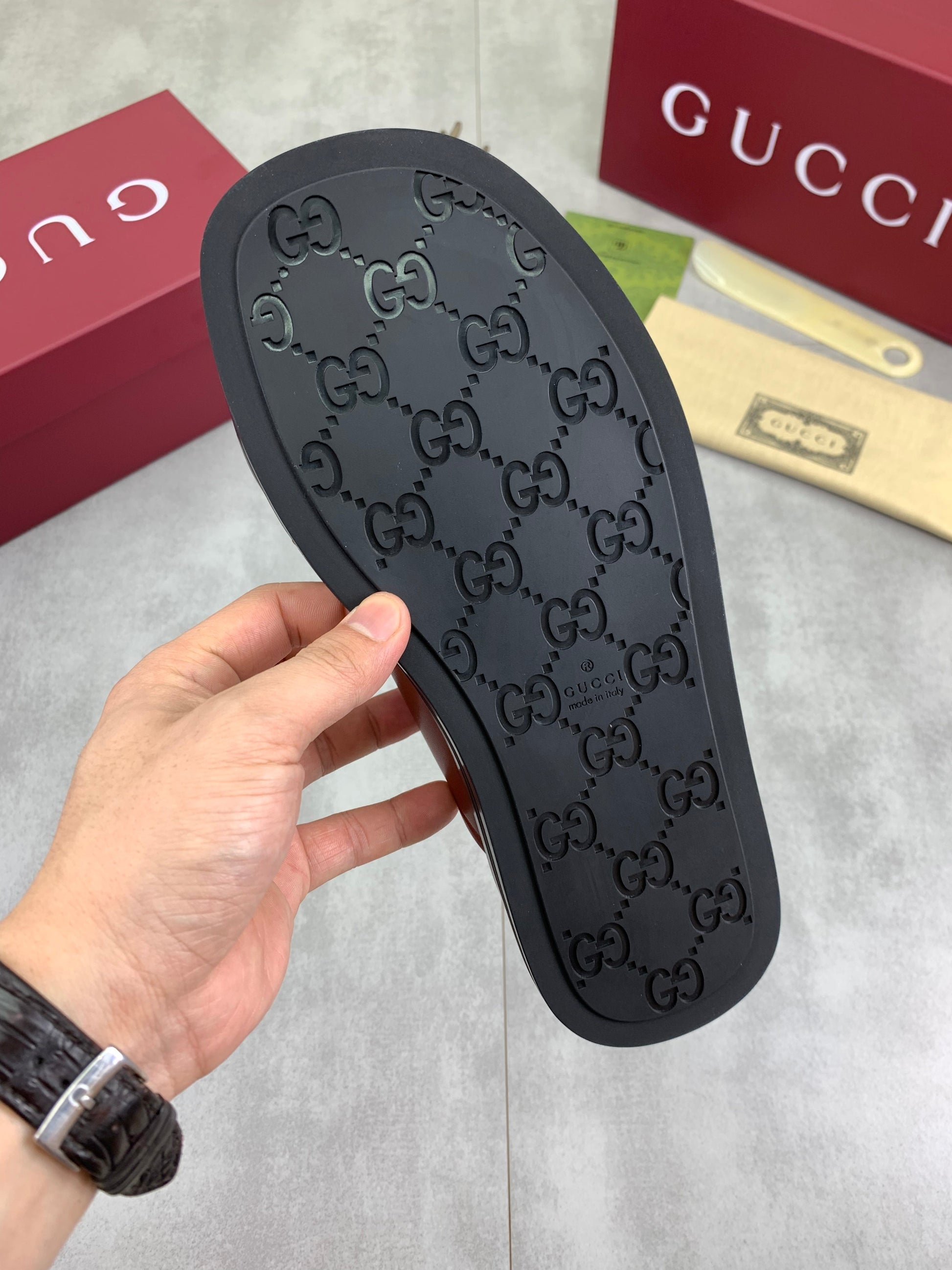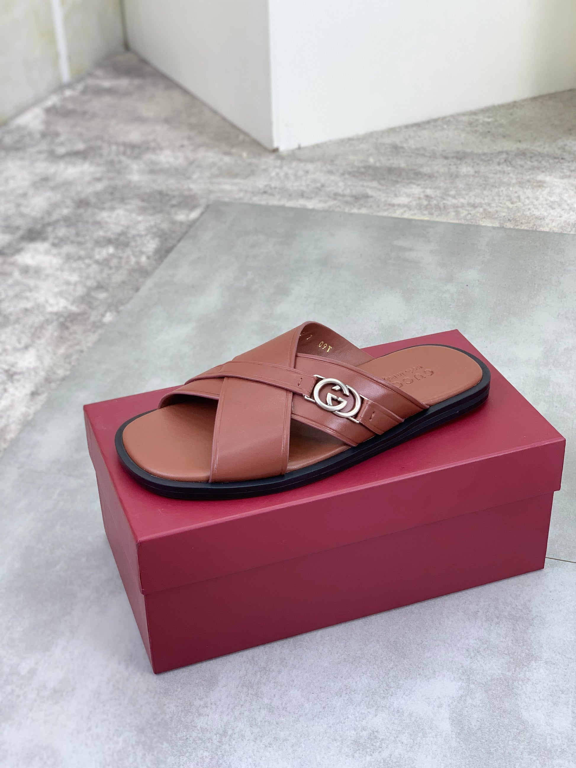 GG Men's 25 Sandals Slide Brown Cowhide 738473