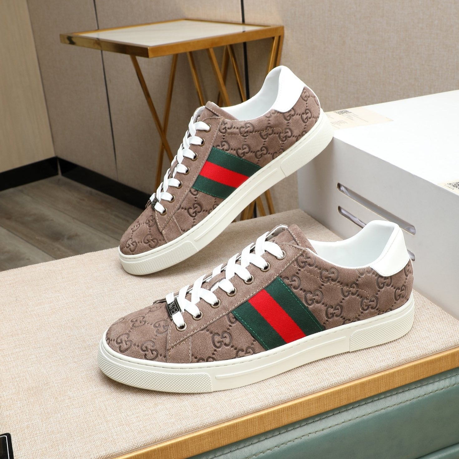 GG Men's ACE Sneaker Brown Embossed Suede 516599