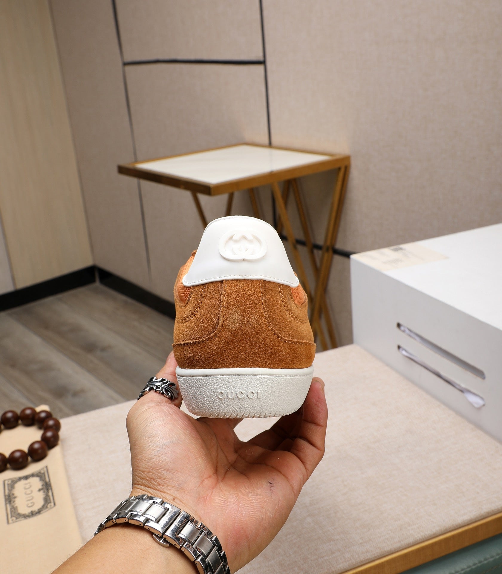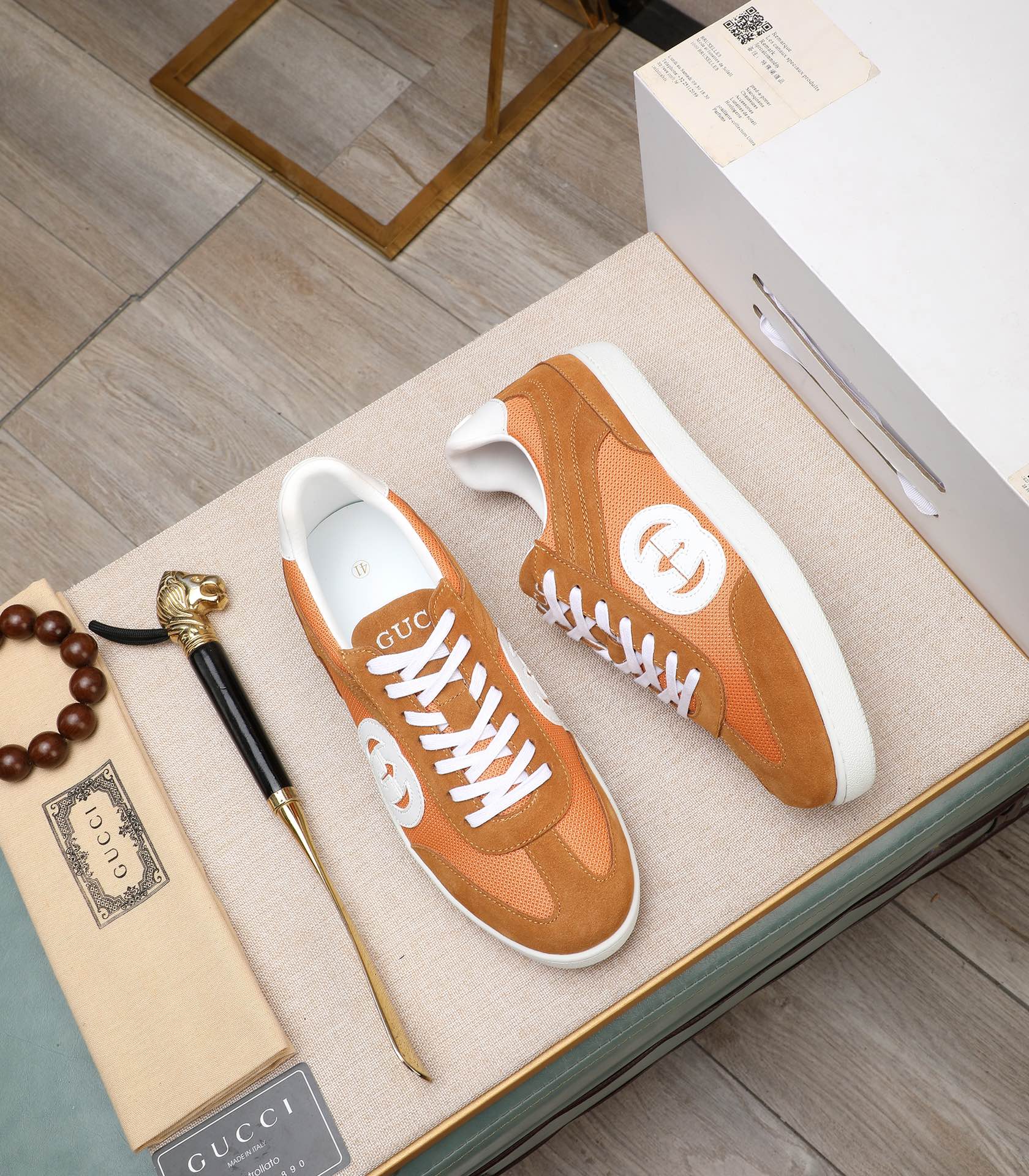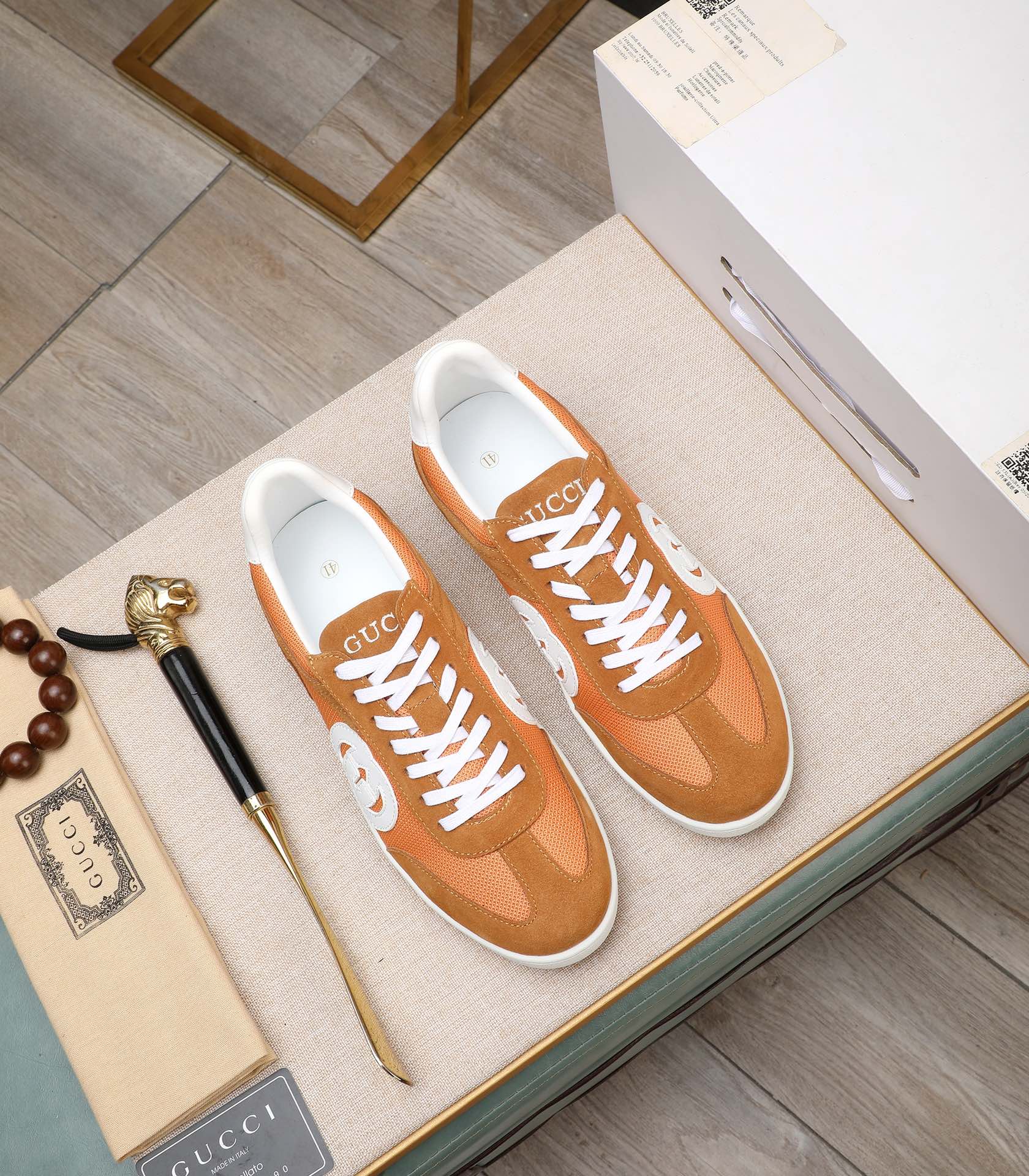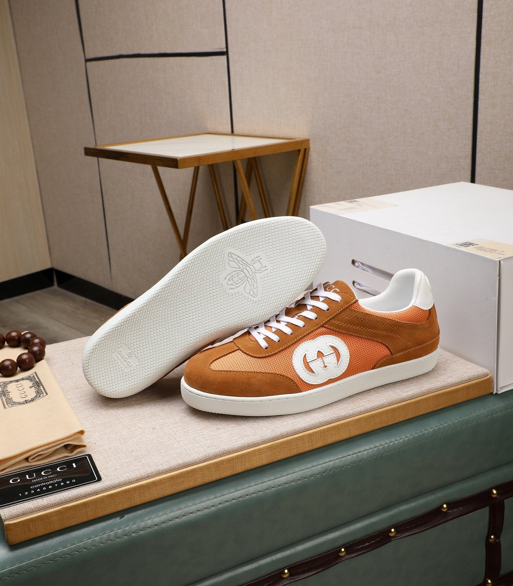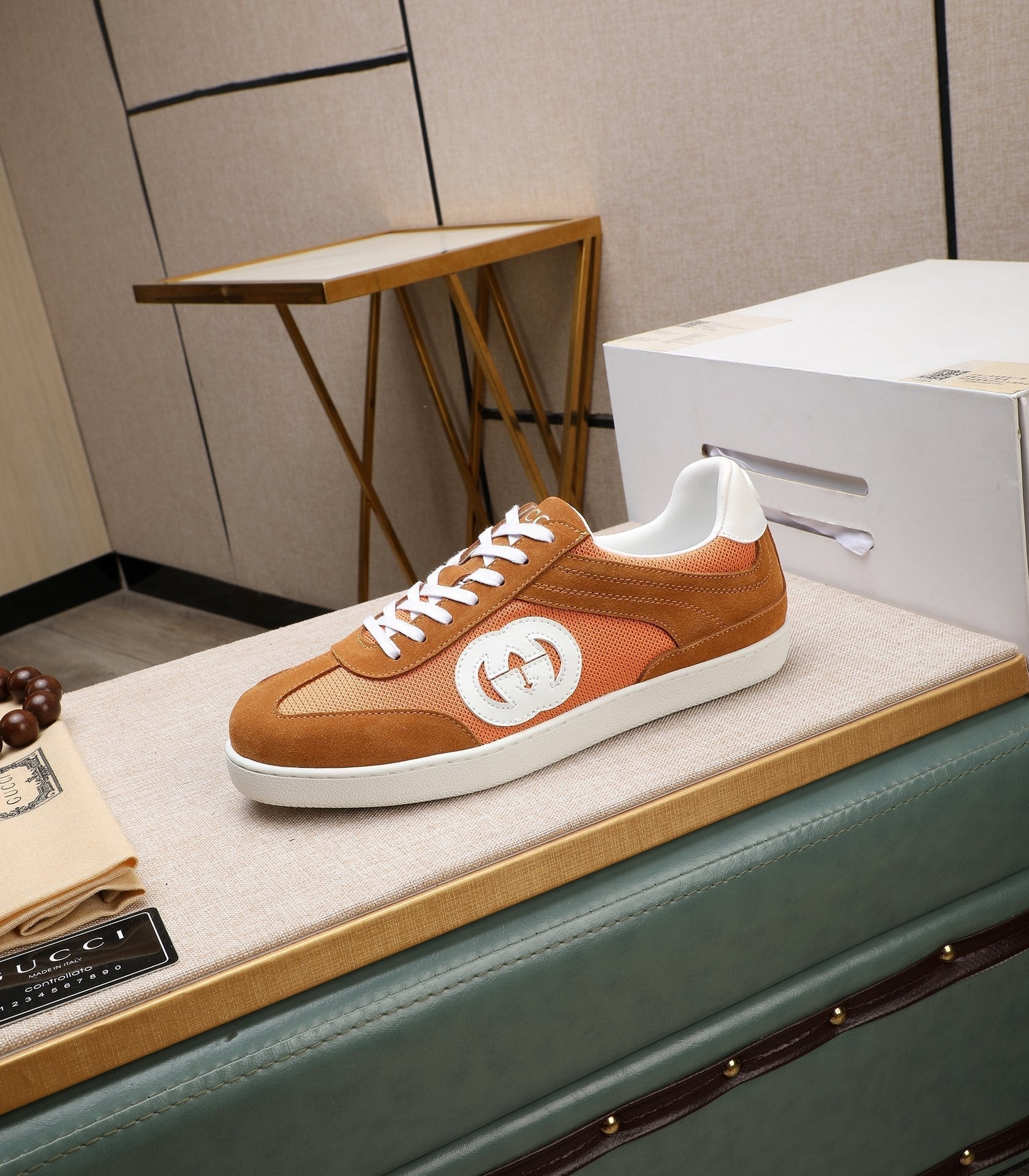 GG Men's G75 Sneaker Brown Orange Mesh Suede 477881