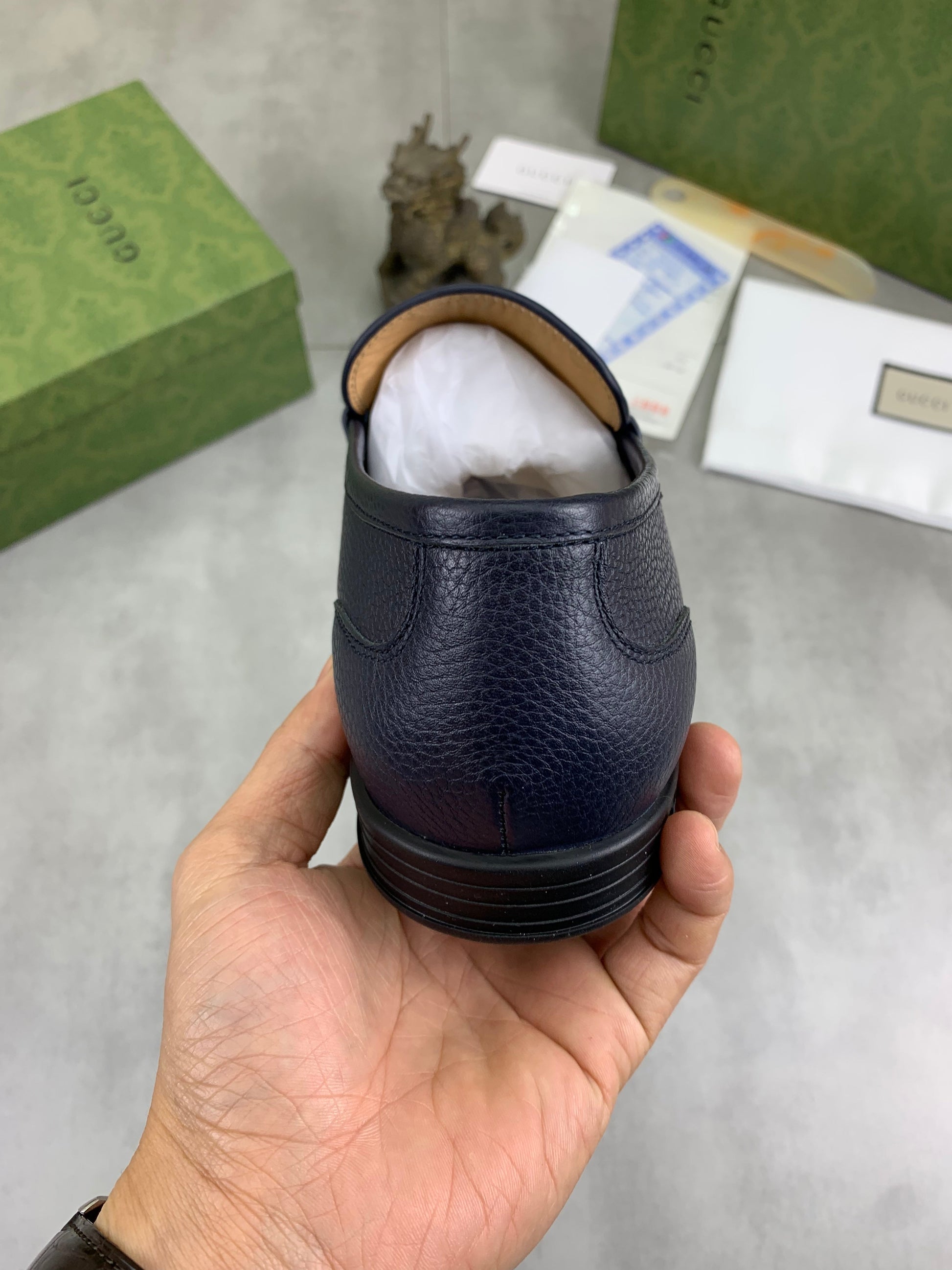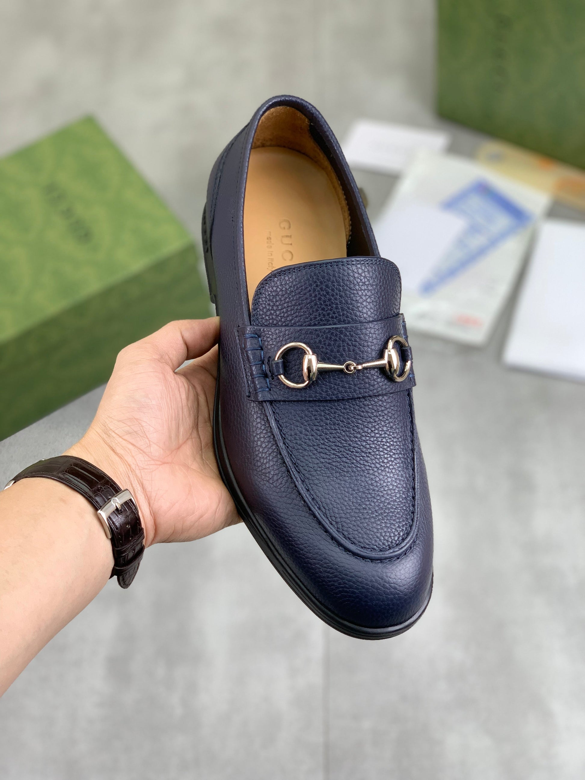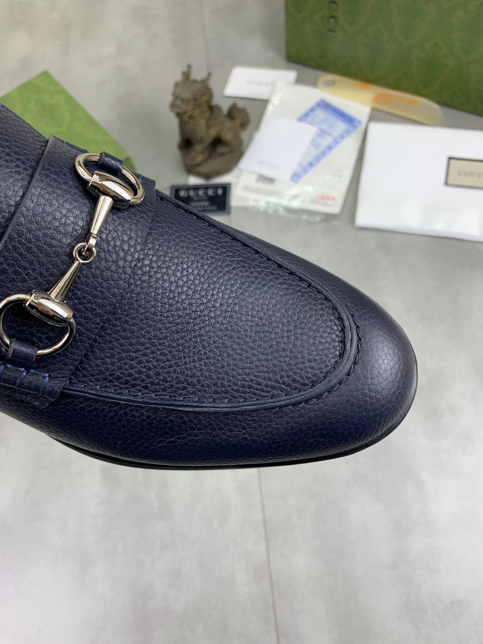 GG Men's Horsebit Loafer Navy Blue Silver Cowhide 524771