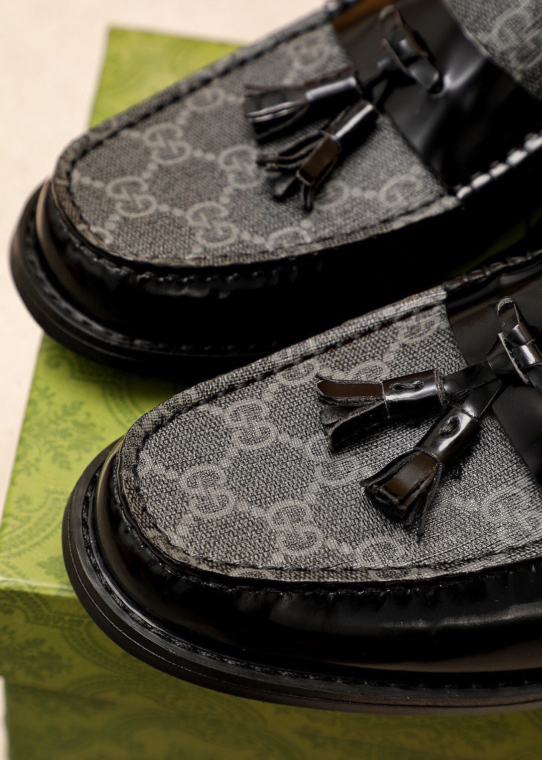 GG Men's Loafer Black Canvas Cowhide 720625