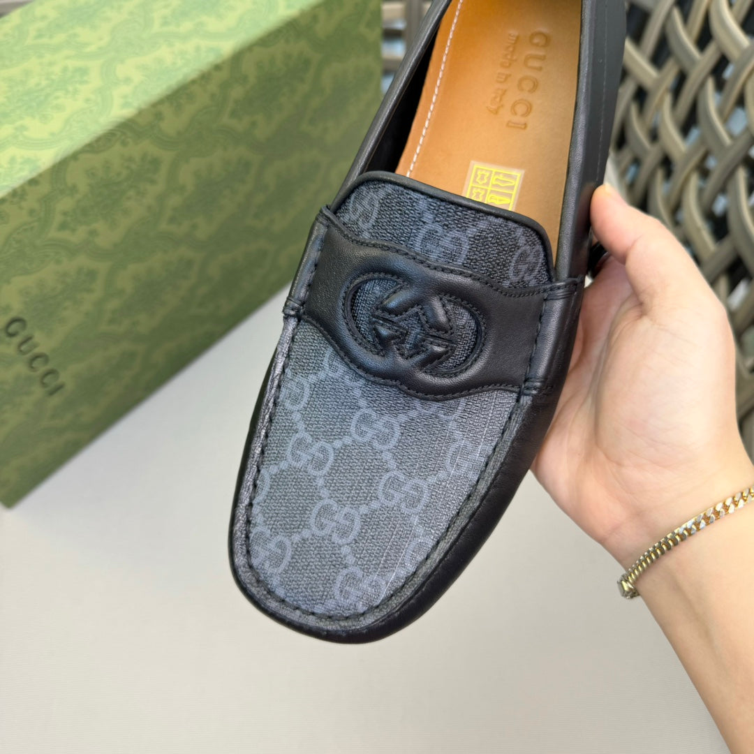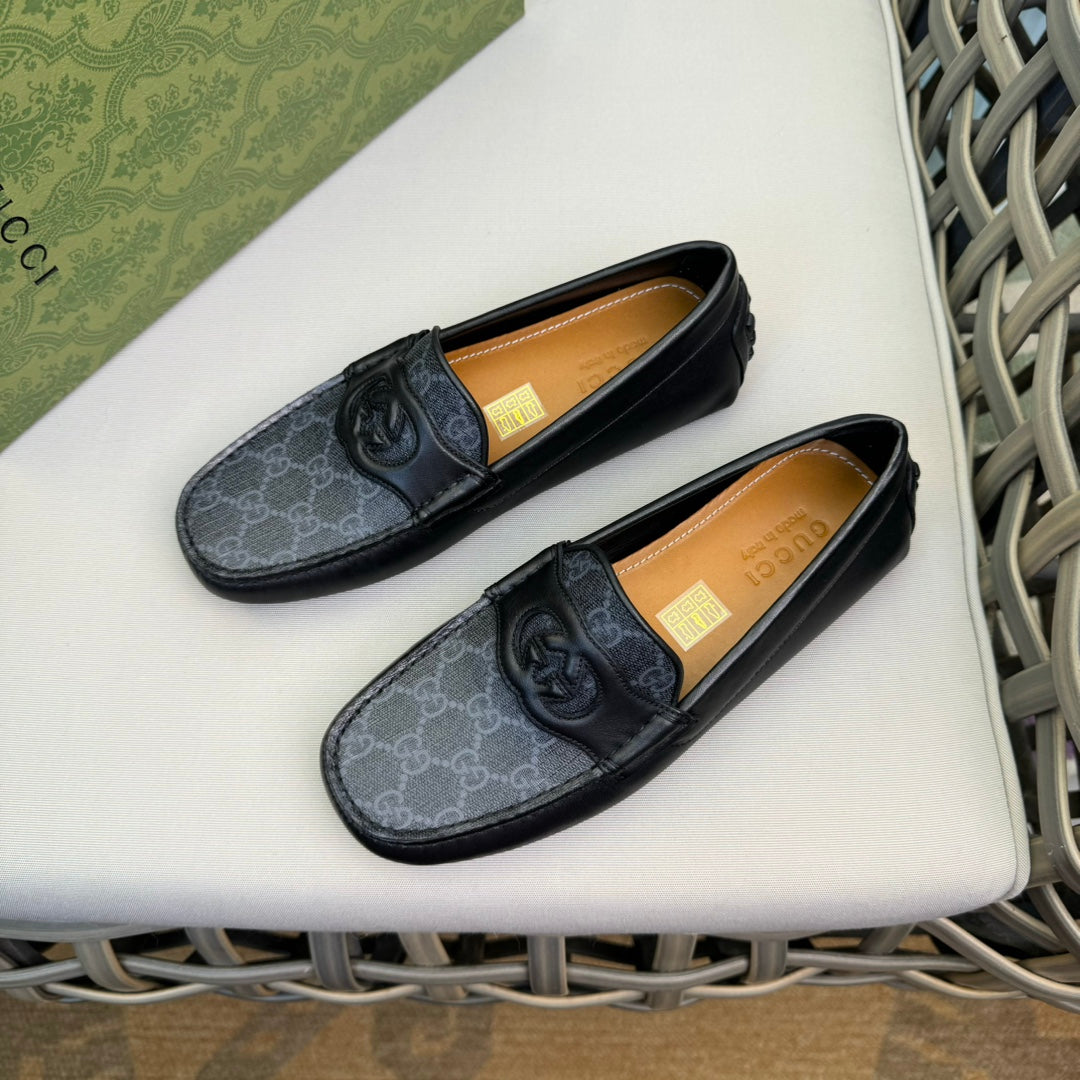 GG Men's Loafer Black Canvas Cowhide 876282