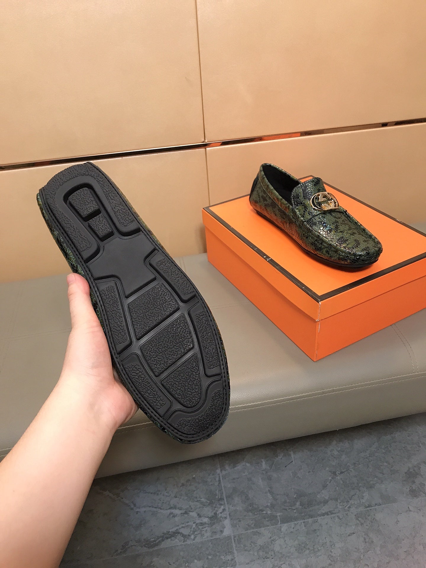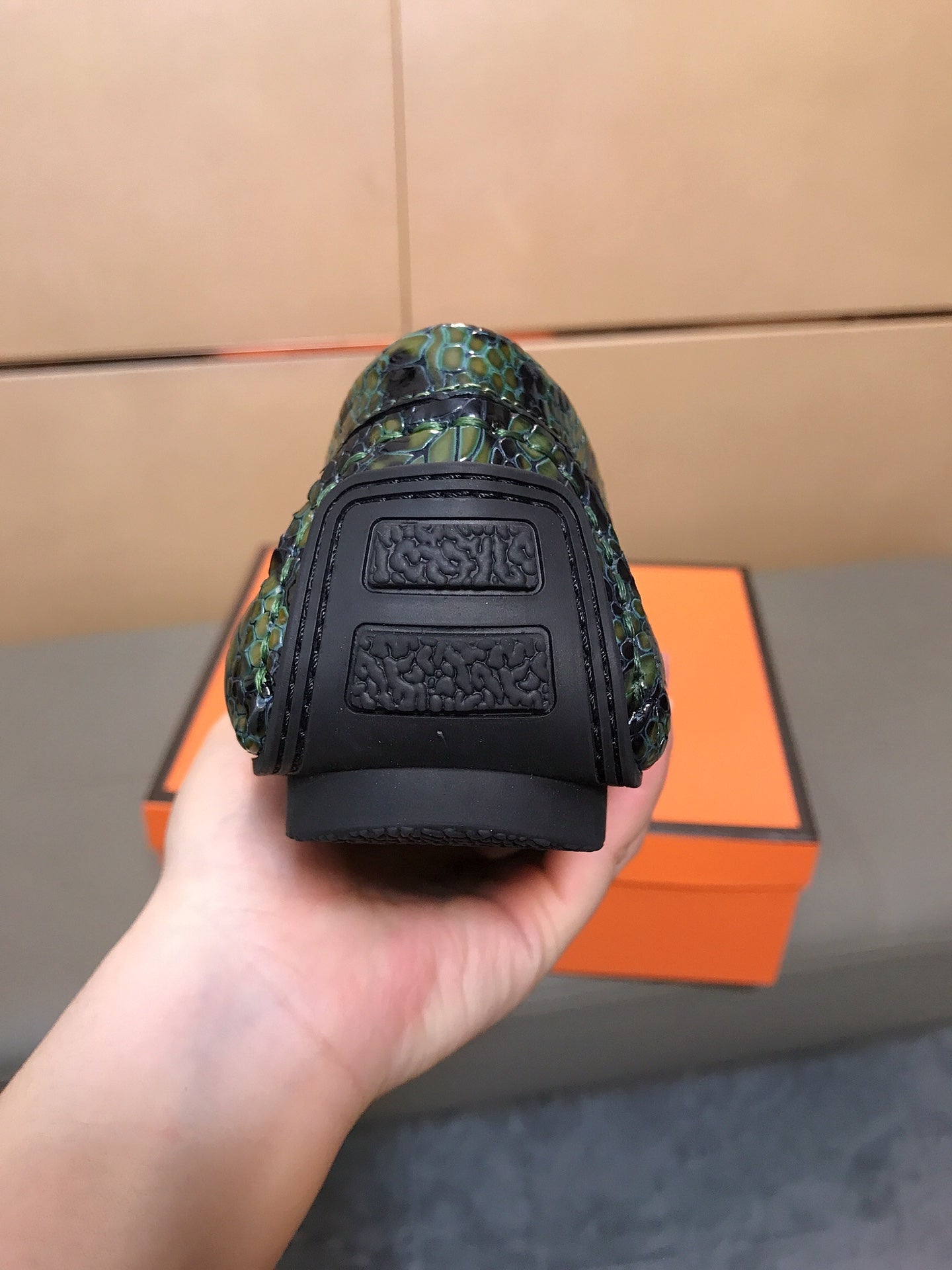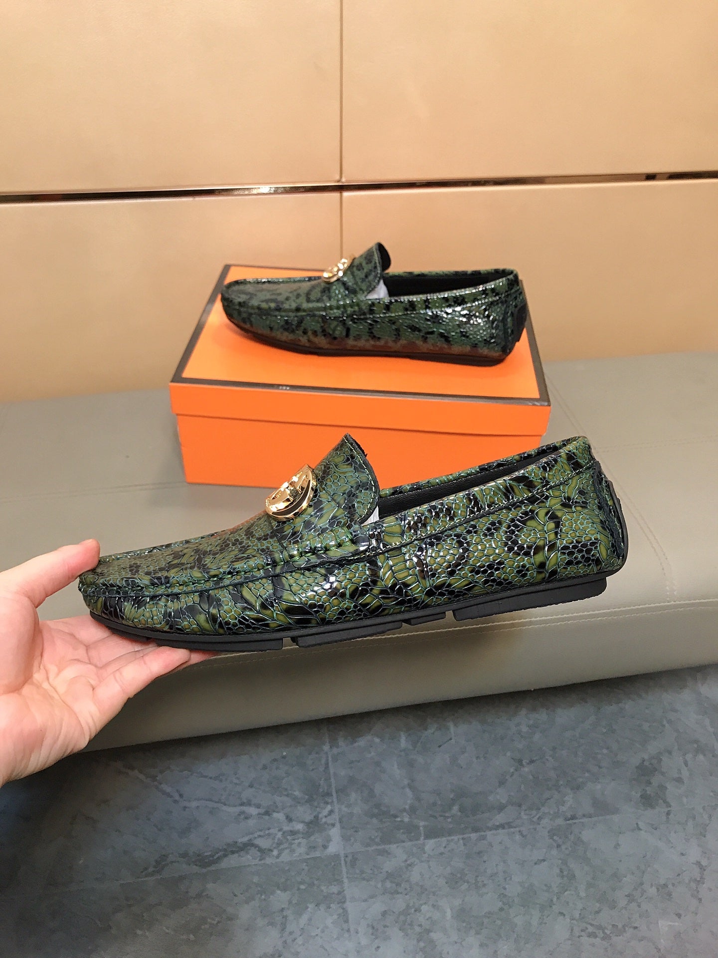 GG Men's Loafer Green Mix Black Embossed Cowhide 748039